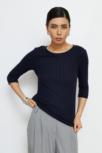 Джемпер прилегающего силуэта из фактурного эластичного полотна. Втачной короткий рукав. Вырез горловины высокая стойка. Джемпер – это хорошая базовая вещь, подходящая для любого гардероба.