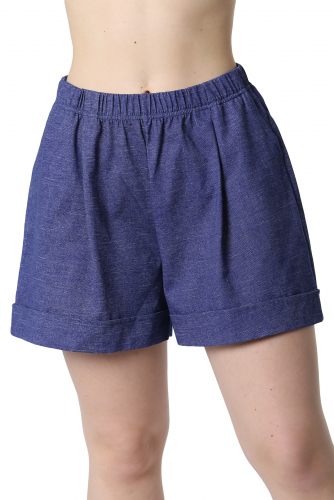 Шорты женские прилегающего силуэта с карманами в боковых швах. Пояс из декоративной резинки «Серебро».
