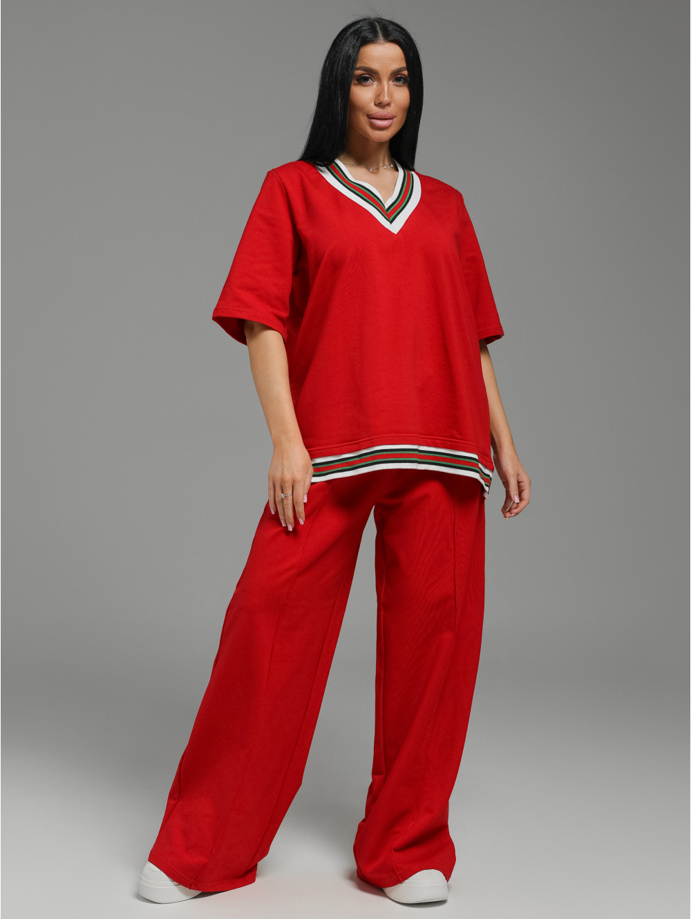 Костюм женский состоит из футболки и брюк.