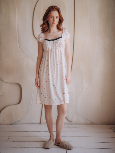 Сорочка выполнена в белом цвете с нанесённым принтом с изображением сердечек.