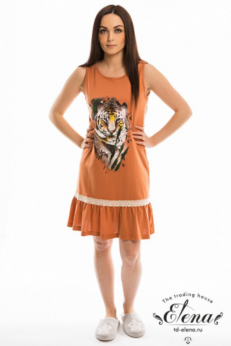 Сорочка из кулирки с отделкой кружевом по горловине. Сорочка без рукавов, с воланом по низу.