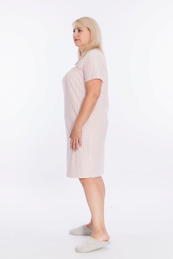 Сорочка свободного кроя выполнена из кулирки. С коротким втачным рукавом, спереди лёгкая сборка на резинку.