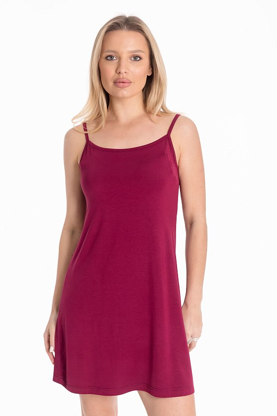 Сорочка на бретелях выполнена из однотонного вискозного полотна. Лёгкая и приятная к телу ткань обеспечивает комфорт и создаёт нежный, женственный образ.