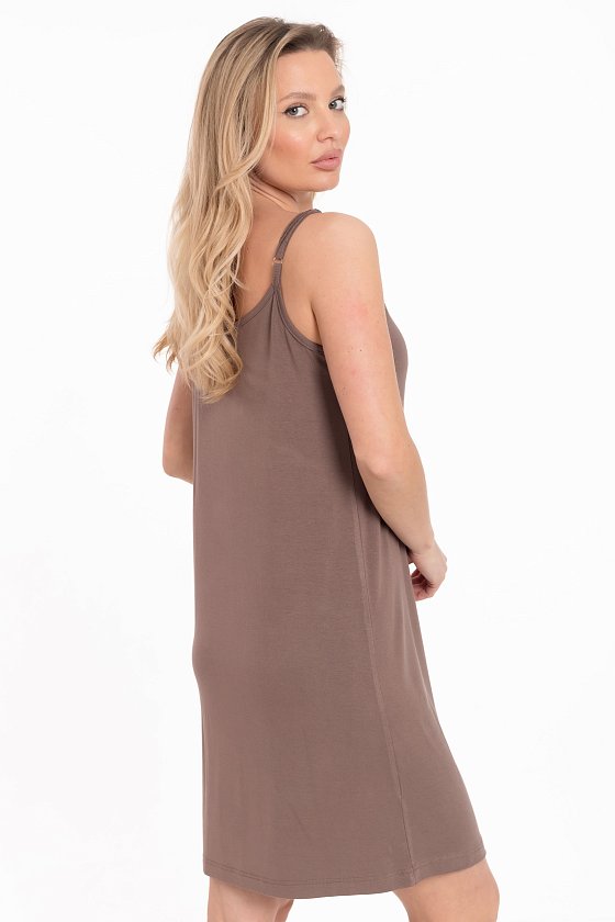 Сорочка на бретелях из мягкой однотонной вискозы — лёгкая и комфортная модель для дома и сна. Изделие длиной до колена имеет разрез в боковом шве слева, что придаёт удобство при движении. Бретели с регуляторами позволяют подстроить посадку по фигуре. Полотно приятно к телу и обеспечивает комфорт в носке.