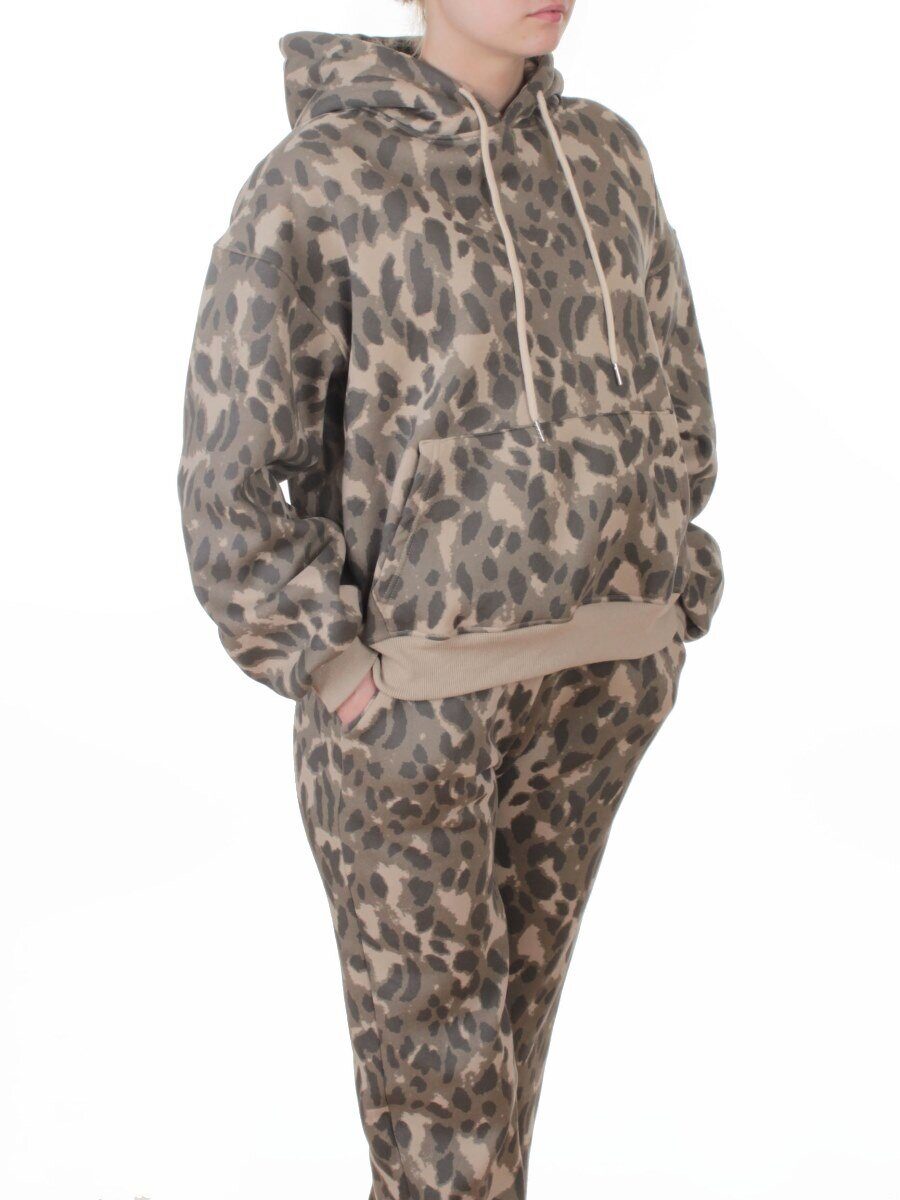 868-6 BEIGE/LEOPARD Костюм спортивный зимний женский (95% хлопок, 5% полиэстер)