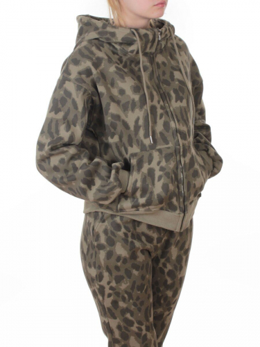 869-3 GREEN/LEOPARD Костюм спортивный зимний женский (95% хлопок, 5% полиэстер)