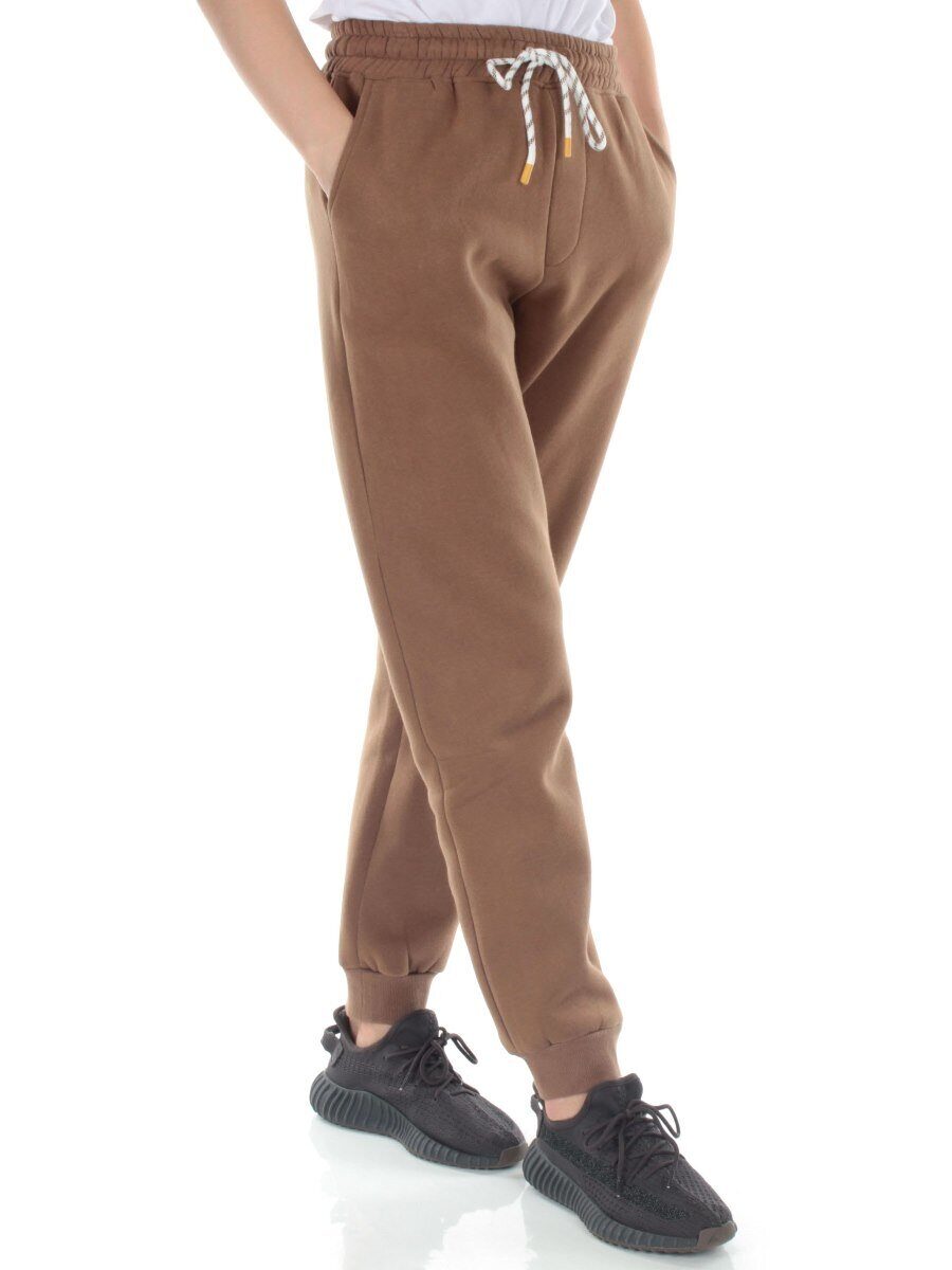 M053 BROWN Брюки спортивные утепленные женские (85% хлопок, 10% полиэстер, 5% спандекс)