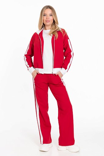 Женский костюм из толстовки и брюк выполнен из однотонного футера петли.