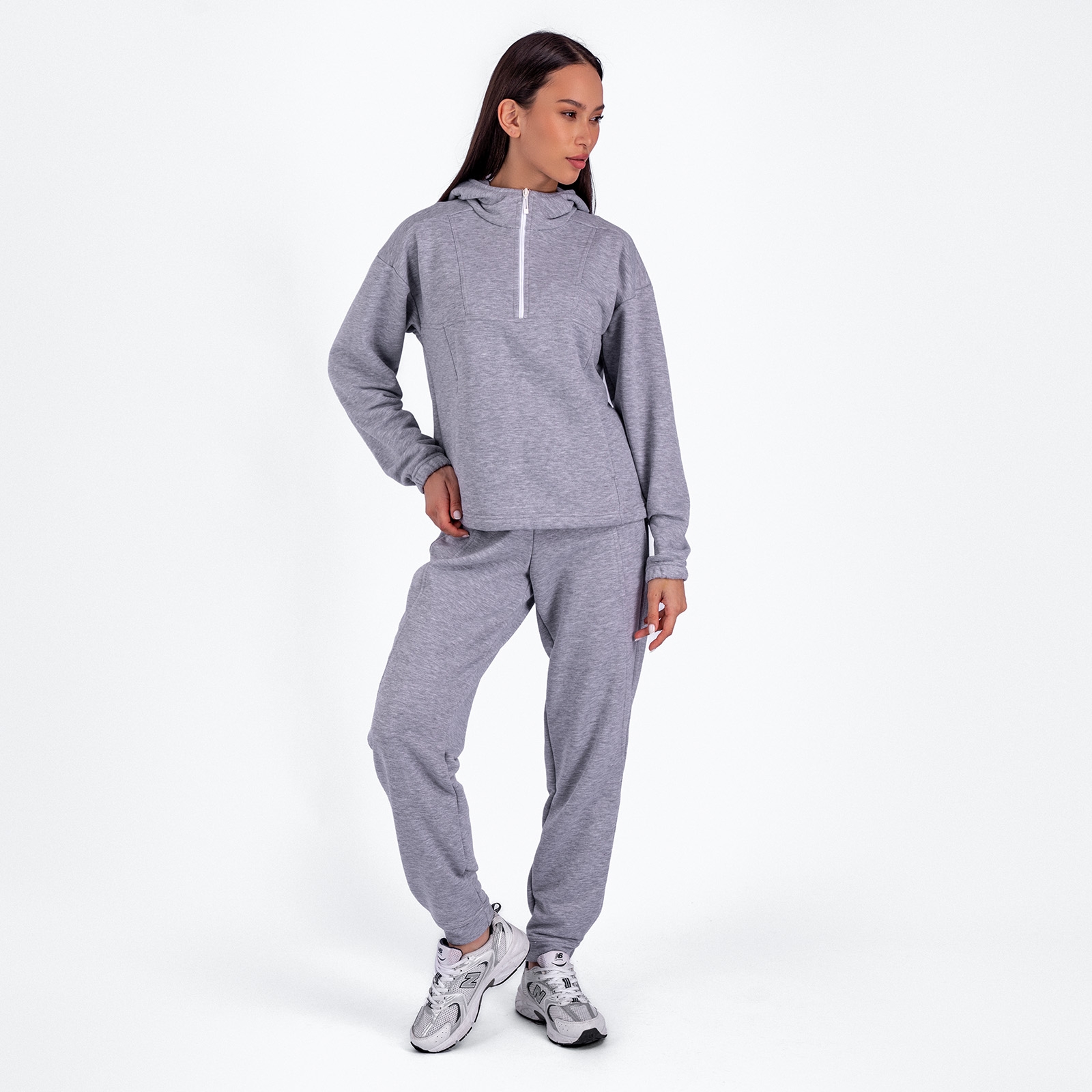 Женский анорак на молнии с капюшоном и карманами в рельефных швах.