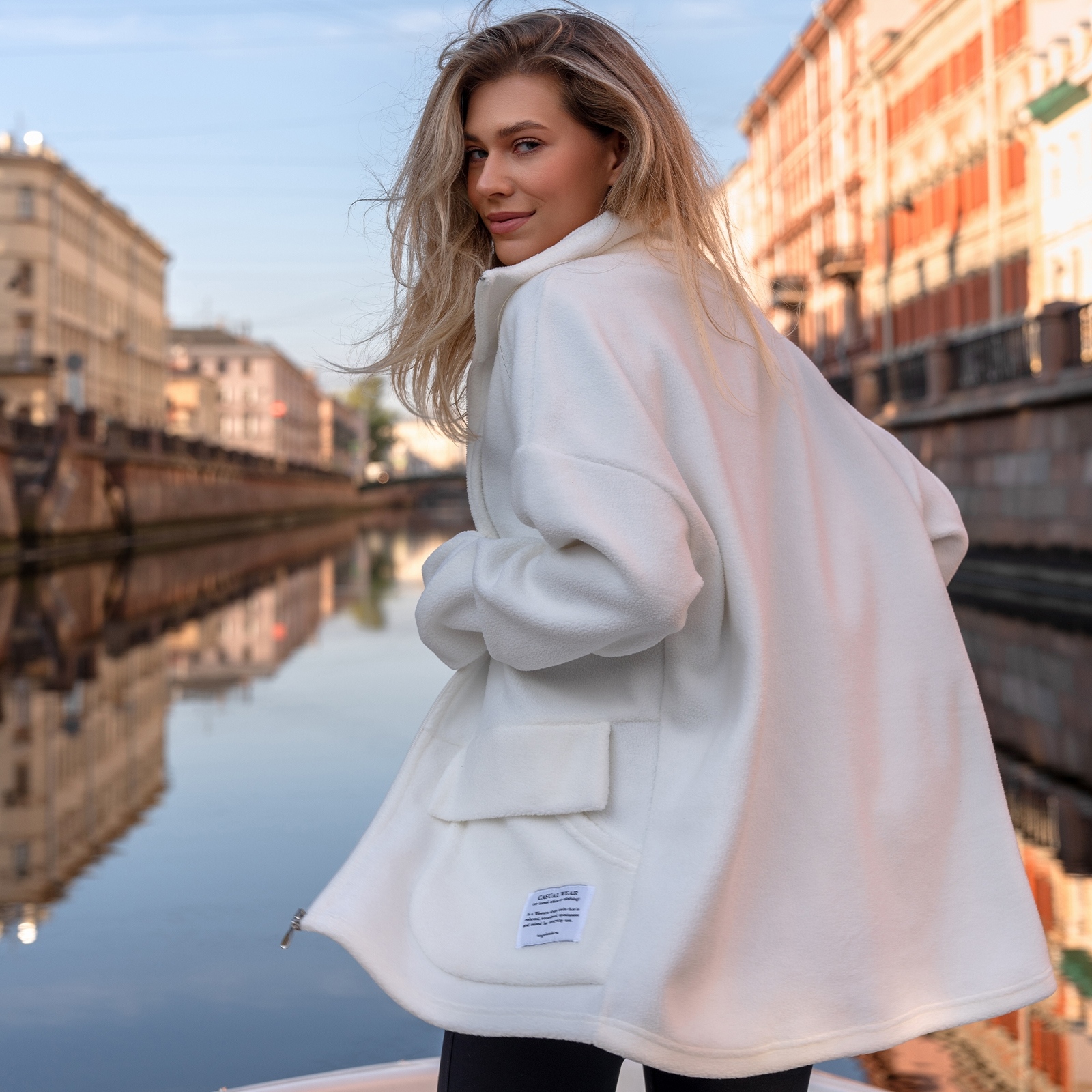 Женская куртка-толстовка на молнии, с воротником-стойкой и накладным карманом. цвет Крем