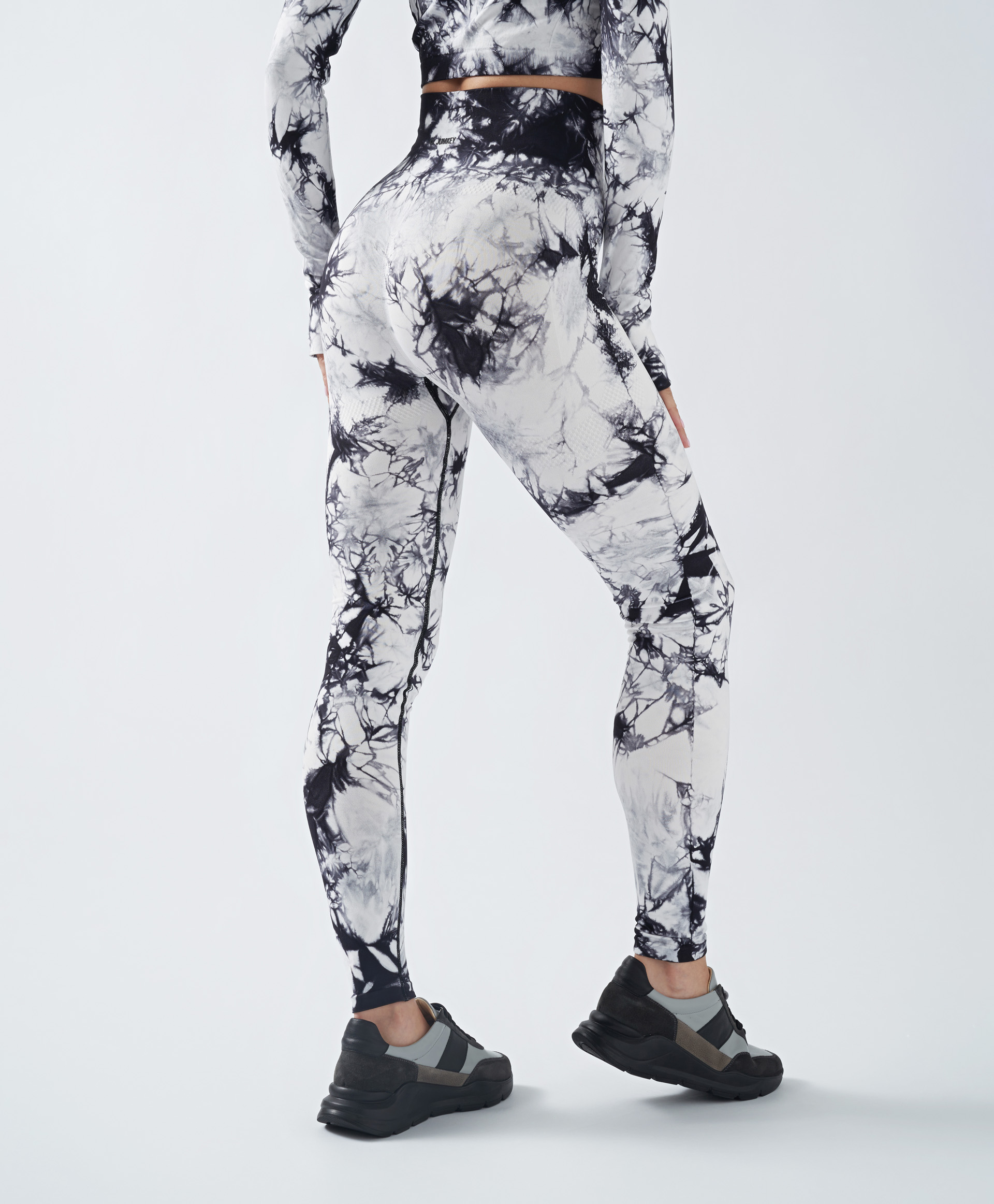 Спортивные черно-белые леггинсы с поддержкой ягодиц для женщины Jumkey - это идеальный компаньон на занятиях. Они выполнены по технологии "Knitt", ультрамягкие, с широким и эластичным рибовым поясом и риб-тканью в нижней части изделия. Благодаря хорошей растяжимости лосины легко снимать и надевать. К тому же они идеально облегают тело, не сдавливая и не мешая главному - процессу тренировок. Поддержка ягодиц обеспечивает не только удобство, но и делает фигуру более выразительной и привлекательной. Черно-белый тай-дай принт смотрится модно и универсально, позволяя легко комбинировать эту модель с одеждой любых оттенков.