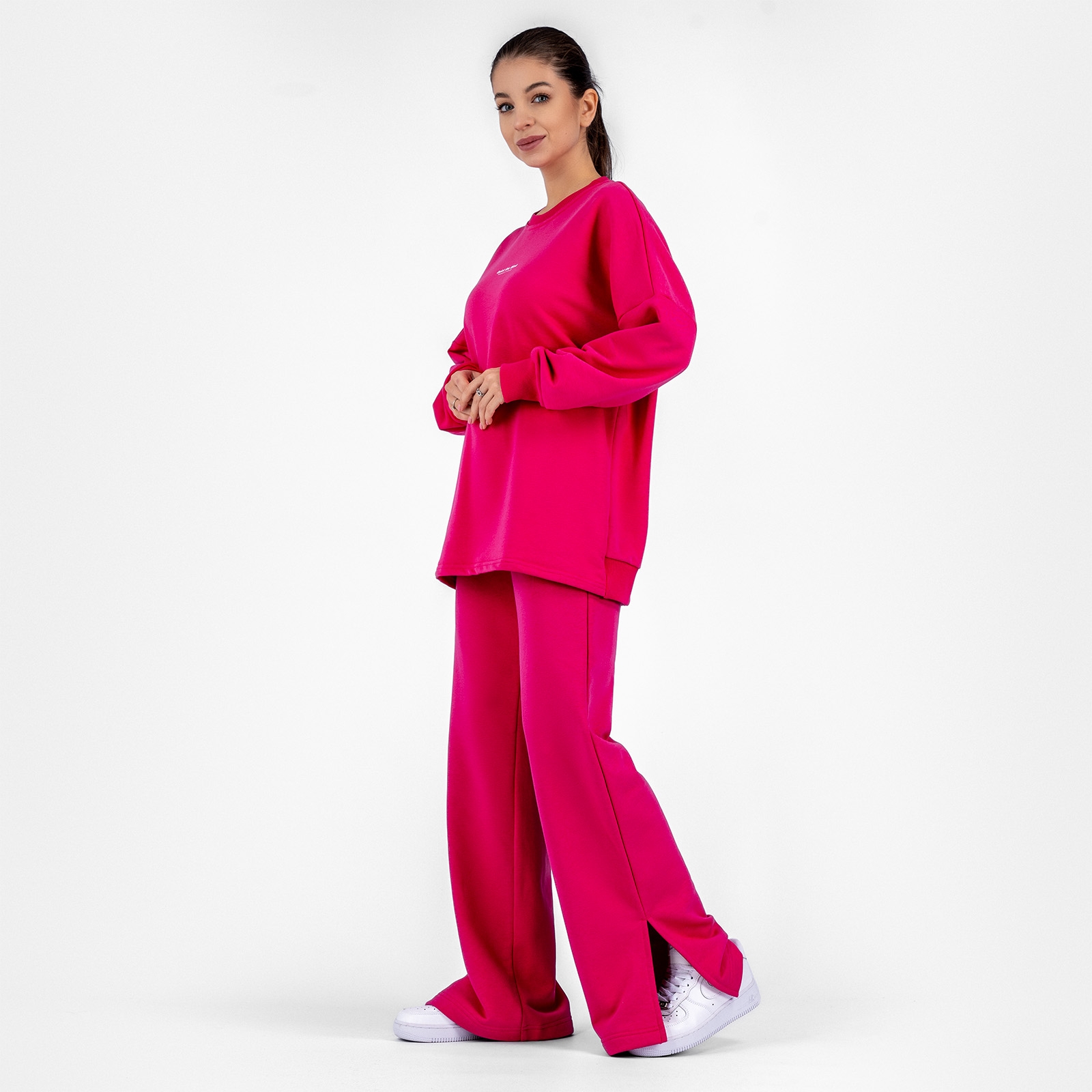 фуксия Женские брюки прямого кроя, с разрезами по боковым швам (принт "Quiet the Mind").Материал: