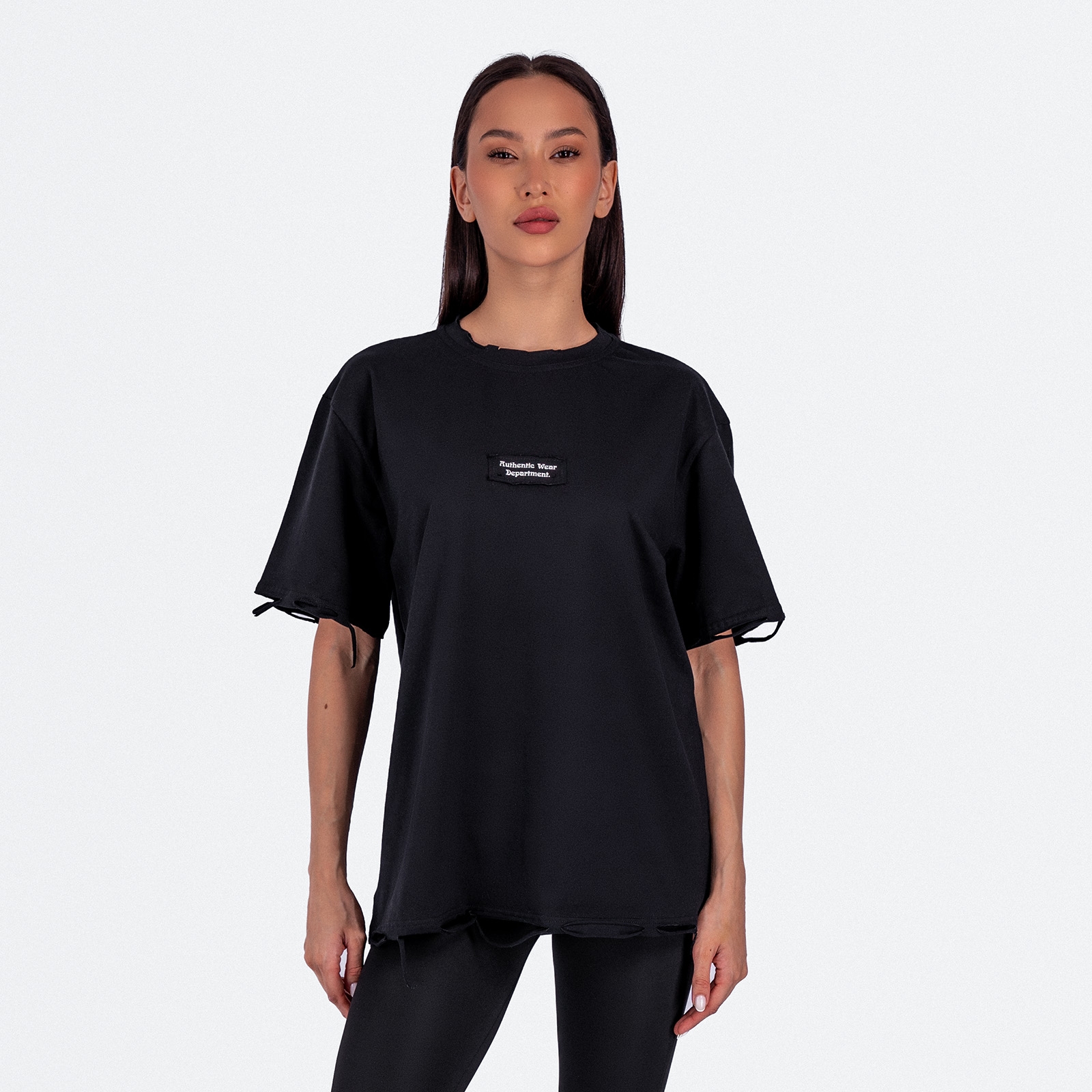 Женская футболка свободного кроя с рваными краями и нашивкой (термо "Autentic Wear Derartment").Материал: