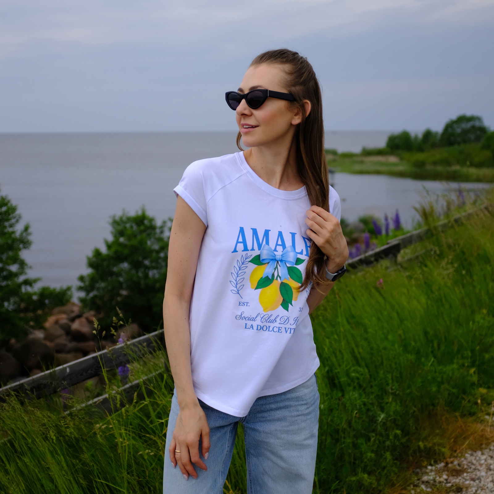 Женская футболка свободного кроя, короткий рукав реглан с отворотом (принт "Amalfi Lemons").Материал: