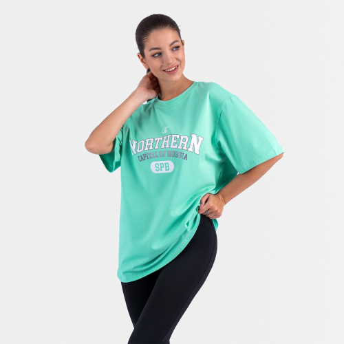 голубой Женская футболка свободного кроя, круглый вырез горловины (принт "Northern").Материал: