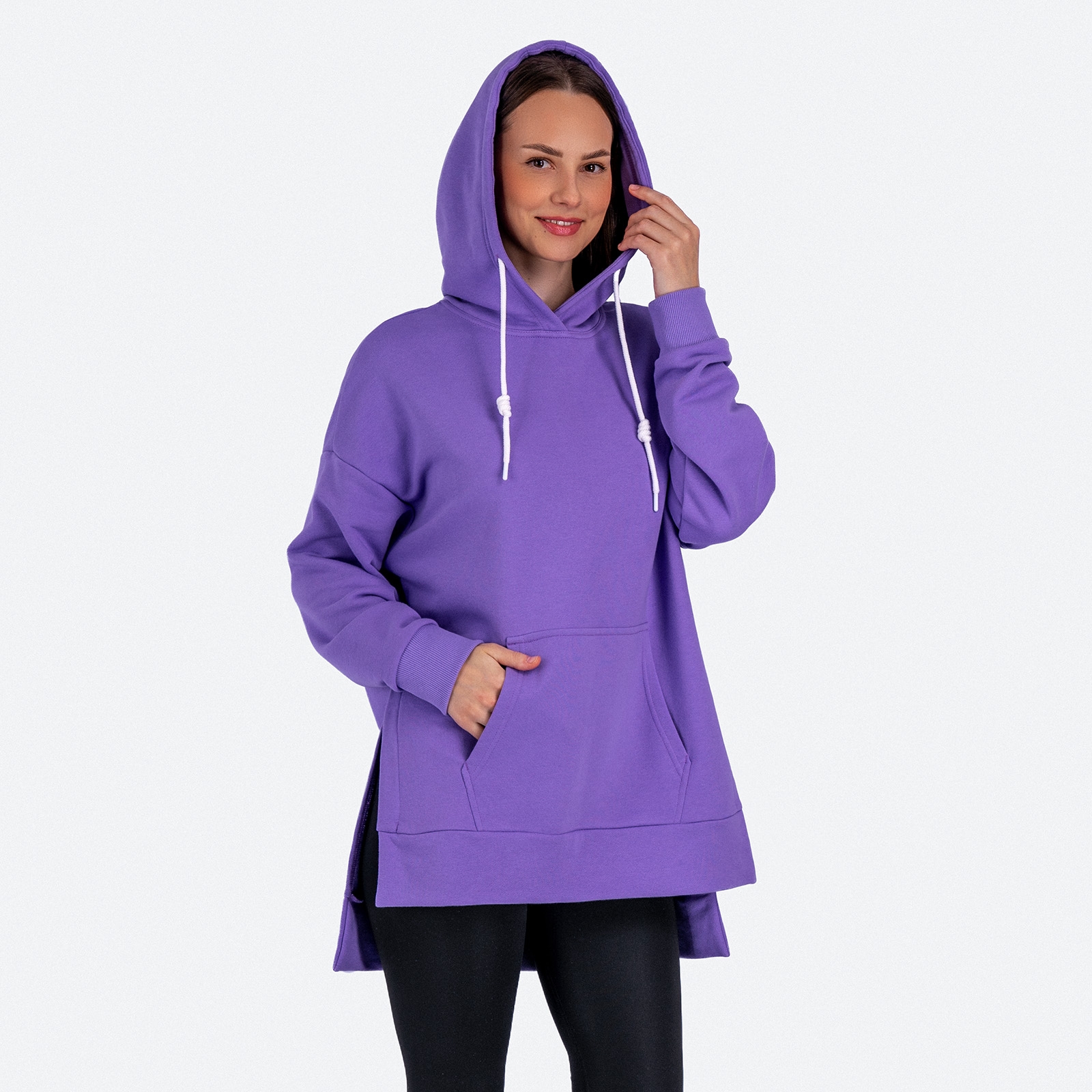 Женская худи с капюшоном и разрезами по боковому шву, карман кенгуру по переду.Материал: