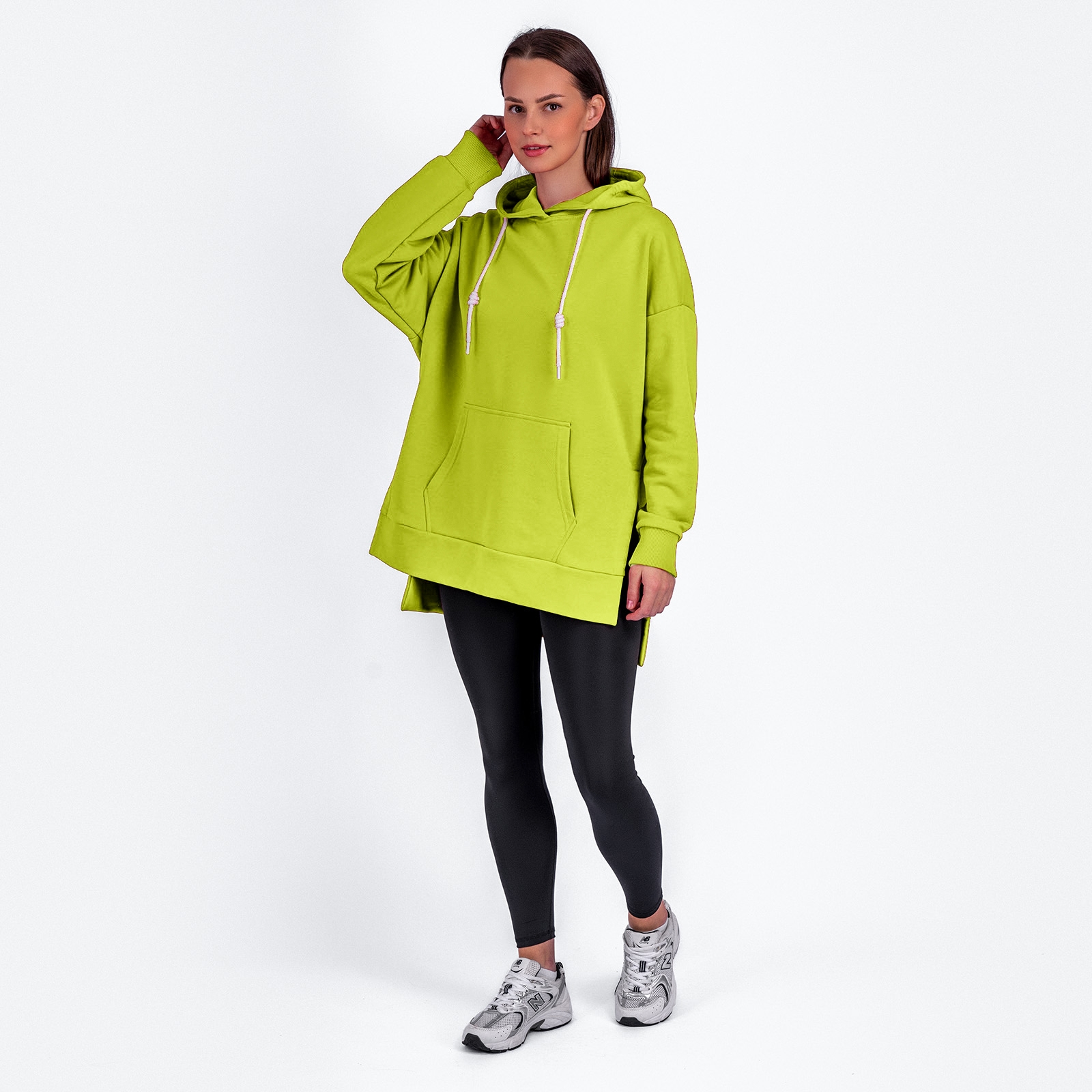т.салатовый Женская худи с капюшоном и разрезами по боковому шву, карман кенгуру по переду.Материал: