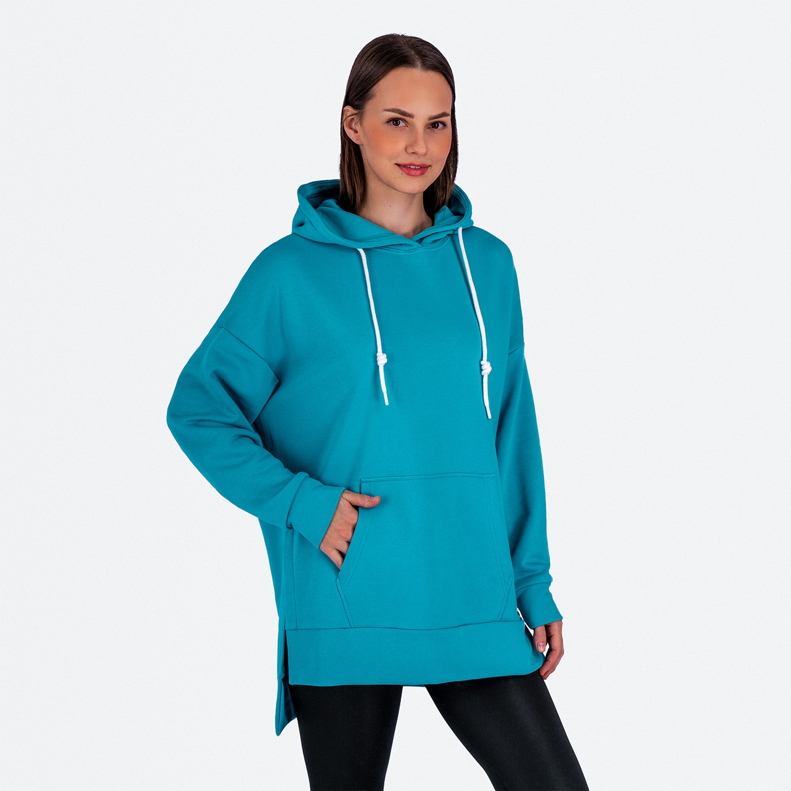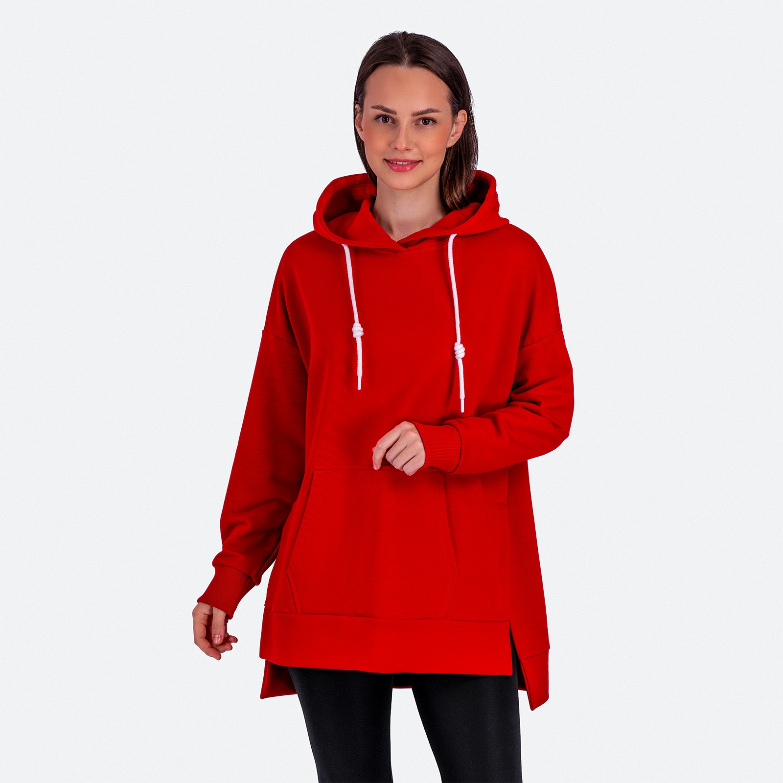Женская худи с капюшоном и разрезами по боковому шву, карман кенгуру по переду.