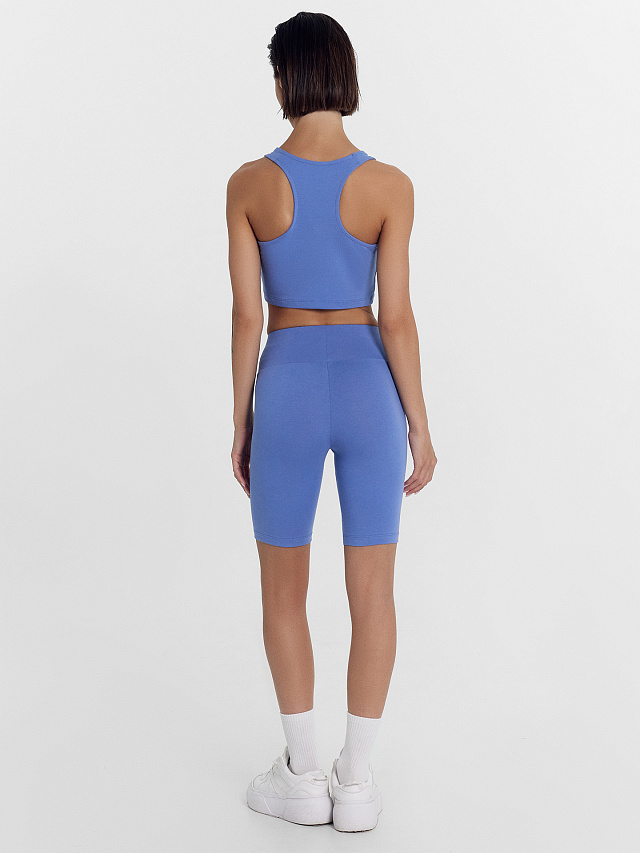 Удобный спортивный комплект из высококачественного хлопка. Включает топ и шорты-велосипедки. Топ облегающего силуэта, с круглым вырезом горловины и «американской» проймой. Нижняя часть топа окантована эластичной тесьмой. Велосипедки облегающего силуэта, длиной до колен, с эластичной тесьмой в поясе. Стильно и функционально — ваше лучшее решение для занятий спортом и активного отдыха. Широкий размерный ряд, красивые расцветки моделей в линейке. Рекомендуем!