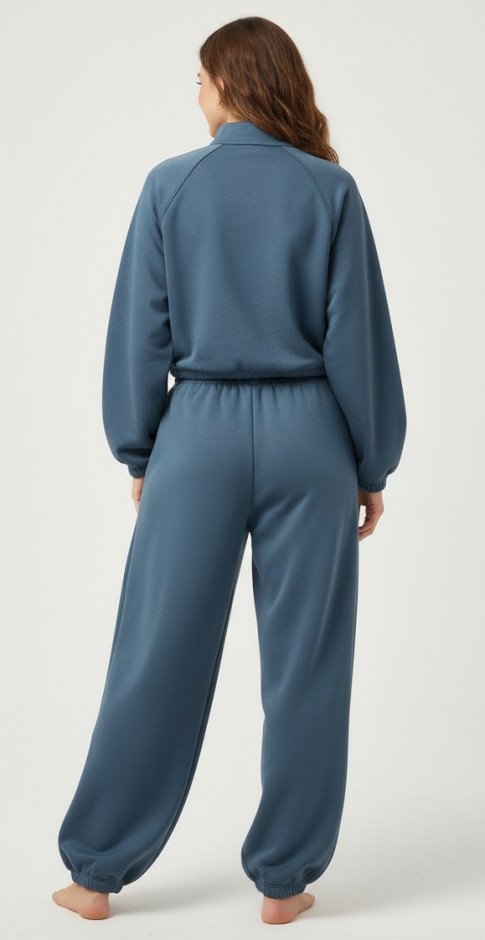 Свитшот со стойкой и центральной застежкой неразъемной тесьмой -молнией.