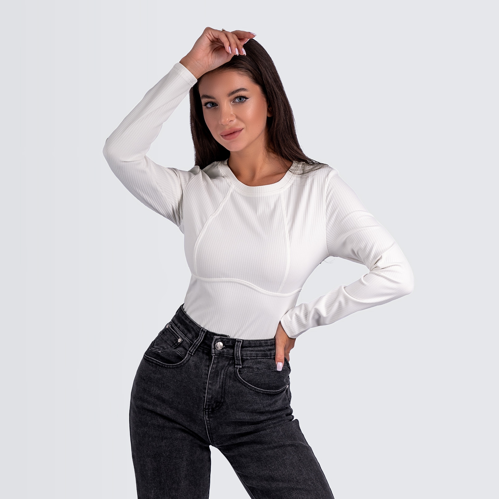 Женский лонгслив с фигурными подрезами под грудью.Материал: