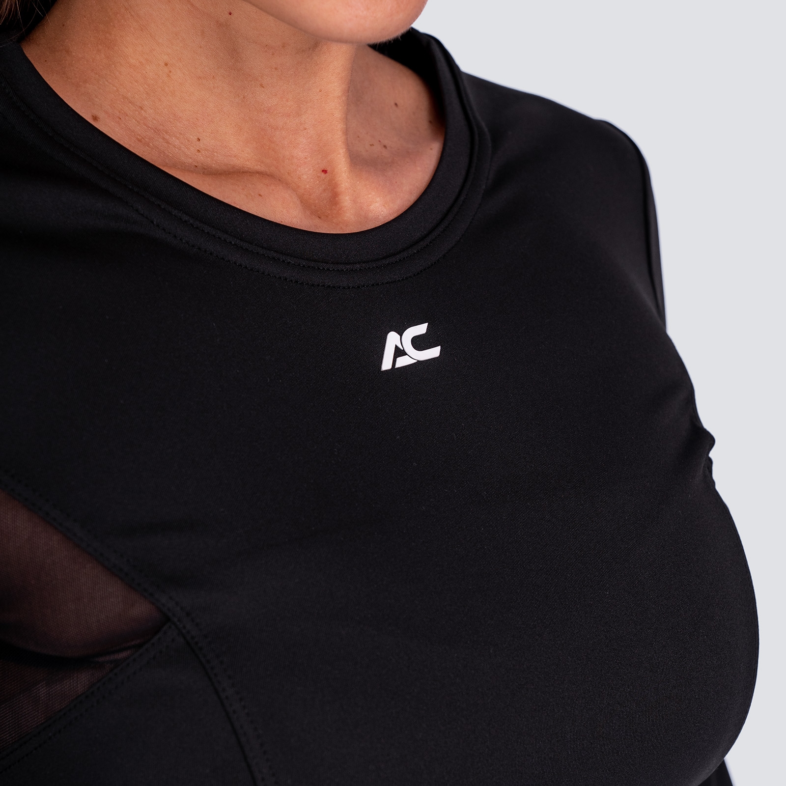 Женский лонгслив прилегающего силуэта, с резными линиями и вставками из сетки (термо "АС").Материал: