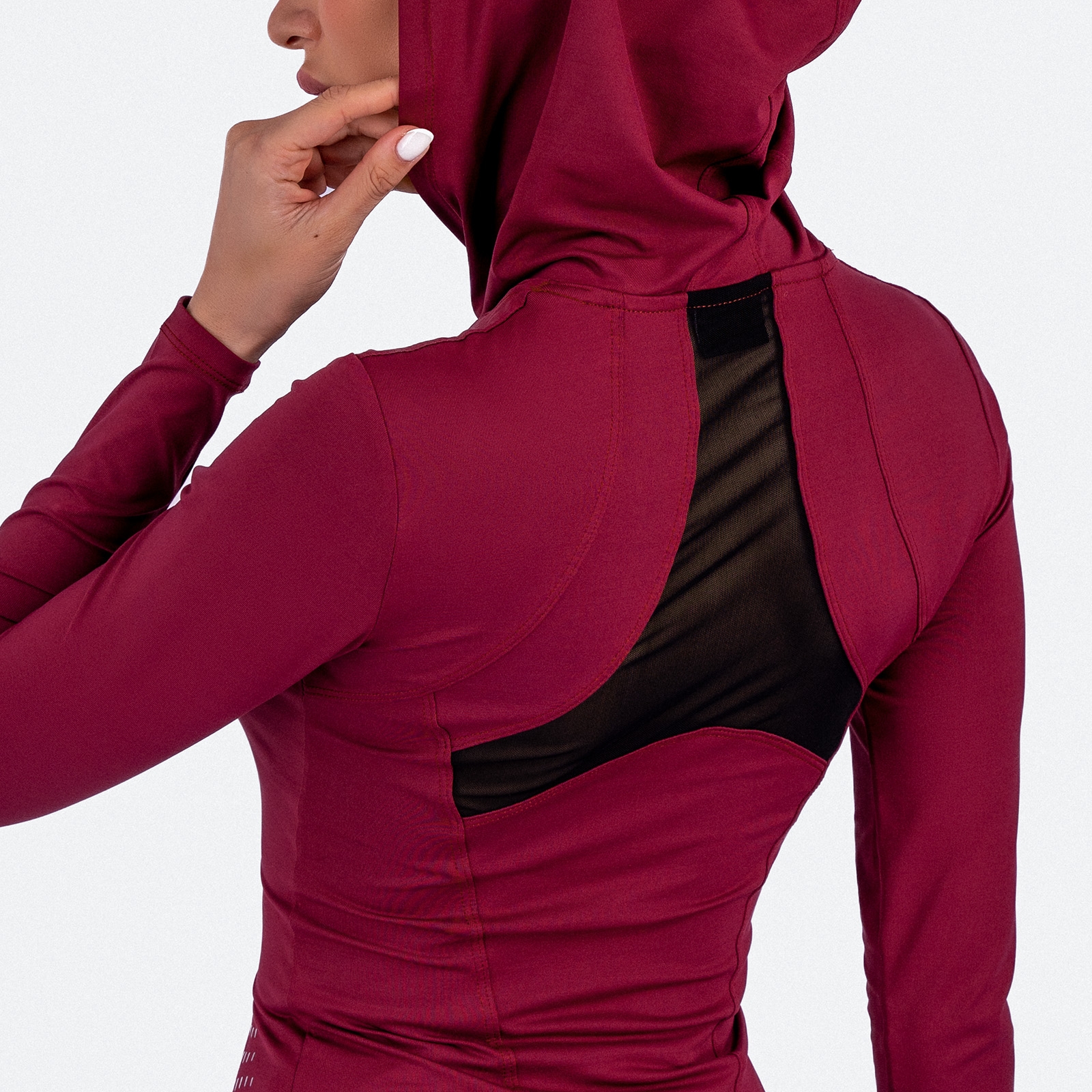 Женский лонгслив прилегающего силуэта с капюшоном и вставками из сетки (термо "светоотражающая").Материал: