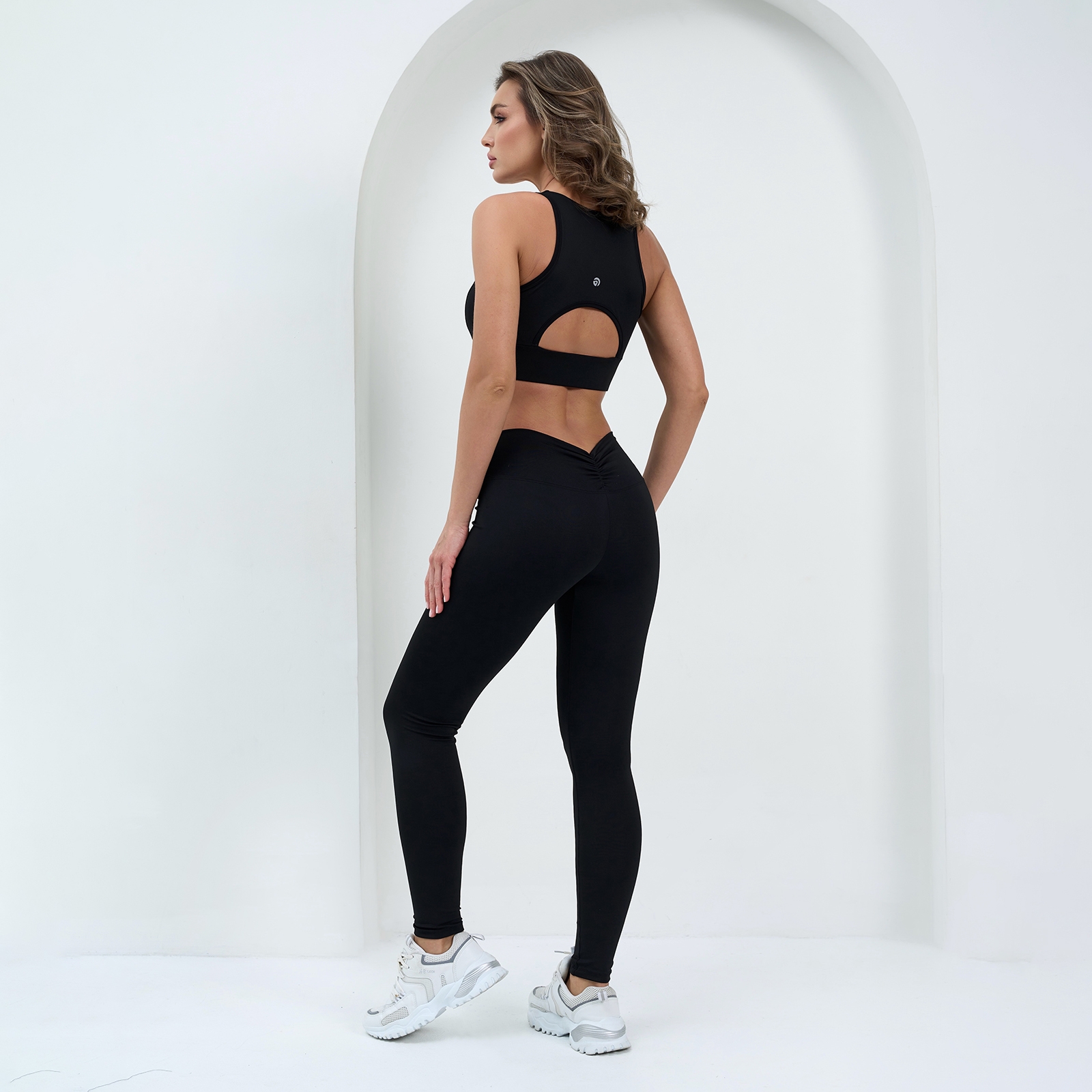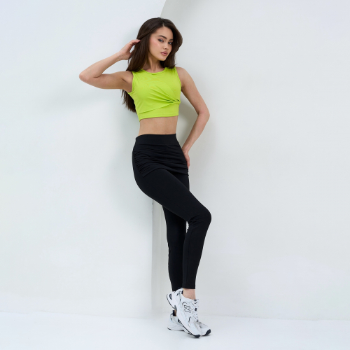 черный Женские лосины на кокетке, на задней части кокетки сборка.Параметры модели: 89/63/91. Размер 42. Рост 170.Материал: