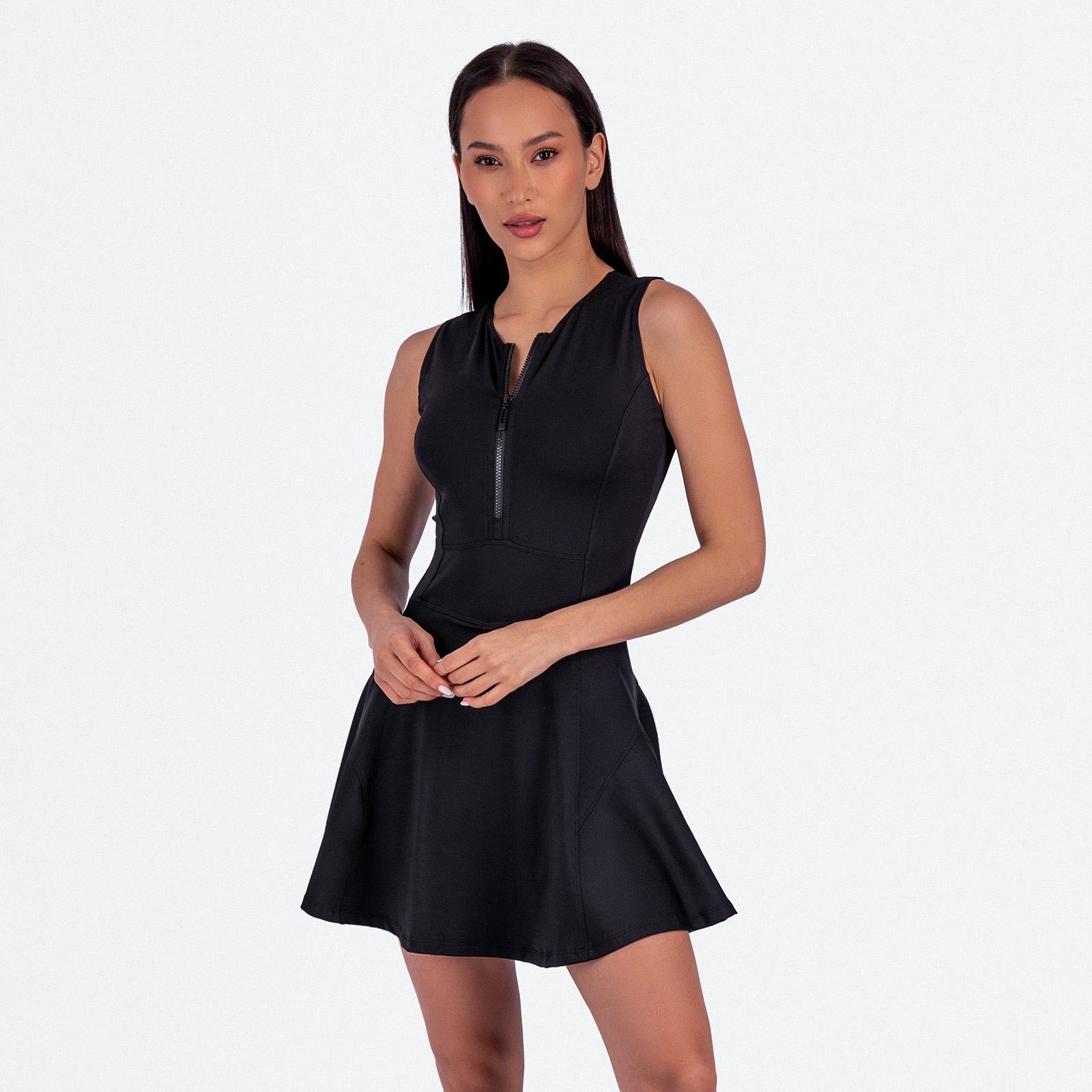 Женское спортивное платье прилегающего силуэта с застежкой-молнией и внутренними шортами.Материал: