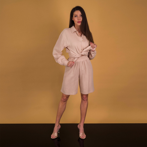 Женские шорты с притачным поясом и притачными манжетами по низу.Материал: