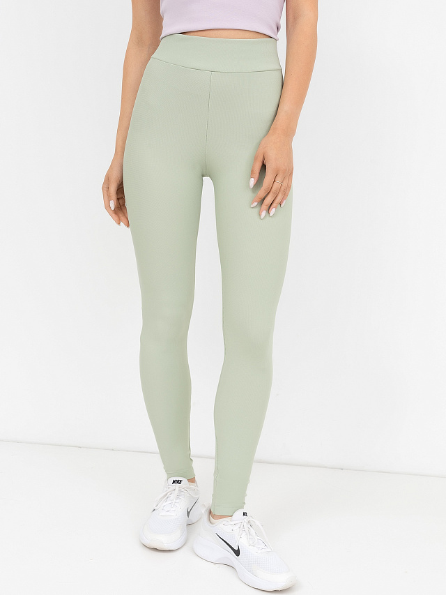 Спортивные легинсы с высокой линией талии пыльно-зеленого цвета