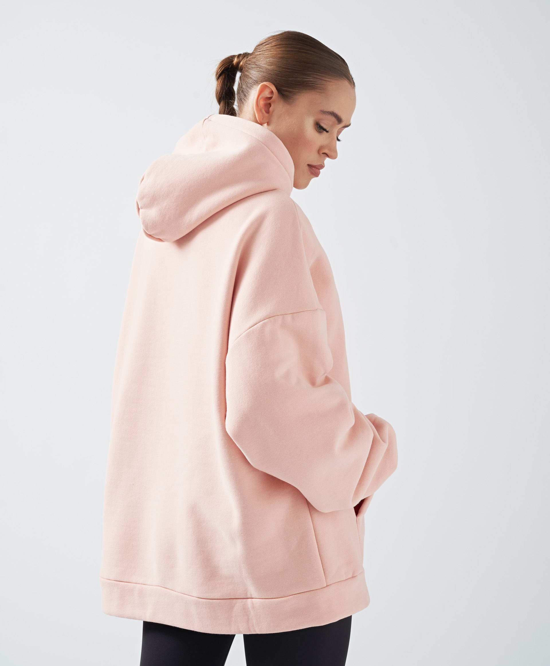 Розовая толстовка оверсайз с капюшоном для женщины Jumkey - идеальный компаньон на каждый день. В ней комфортно заниматься спортом, приятно дойти до фитнес-зала или прогуляться с подругами по парку. В глубоком капюшоне хочется утонуть. Он большой, плотный, не только согревает голову, но и повышает градус стиля. Само изделие выполнено из футера френч терри с мягчайшим начесом. Поэтому в худи тепло, комфортно, оно приятное к телу и на ощупь. Модель оверсайз, со спущенной линией плеча и большим карманом-кенгуру. Подойдет женщинам с любым типом фигуры. В неё хочется укутаться и не снимать никогда. Благодаря нежному приглушенному розовому цвету и однотонному лаконичному дизайну с небольшим патчем спереди, кофту легко комбинировать с одеждой любых оттенков и стилей.