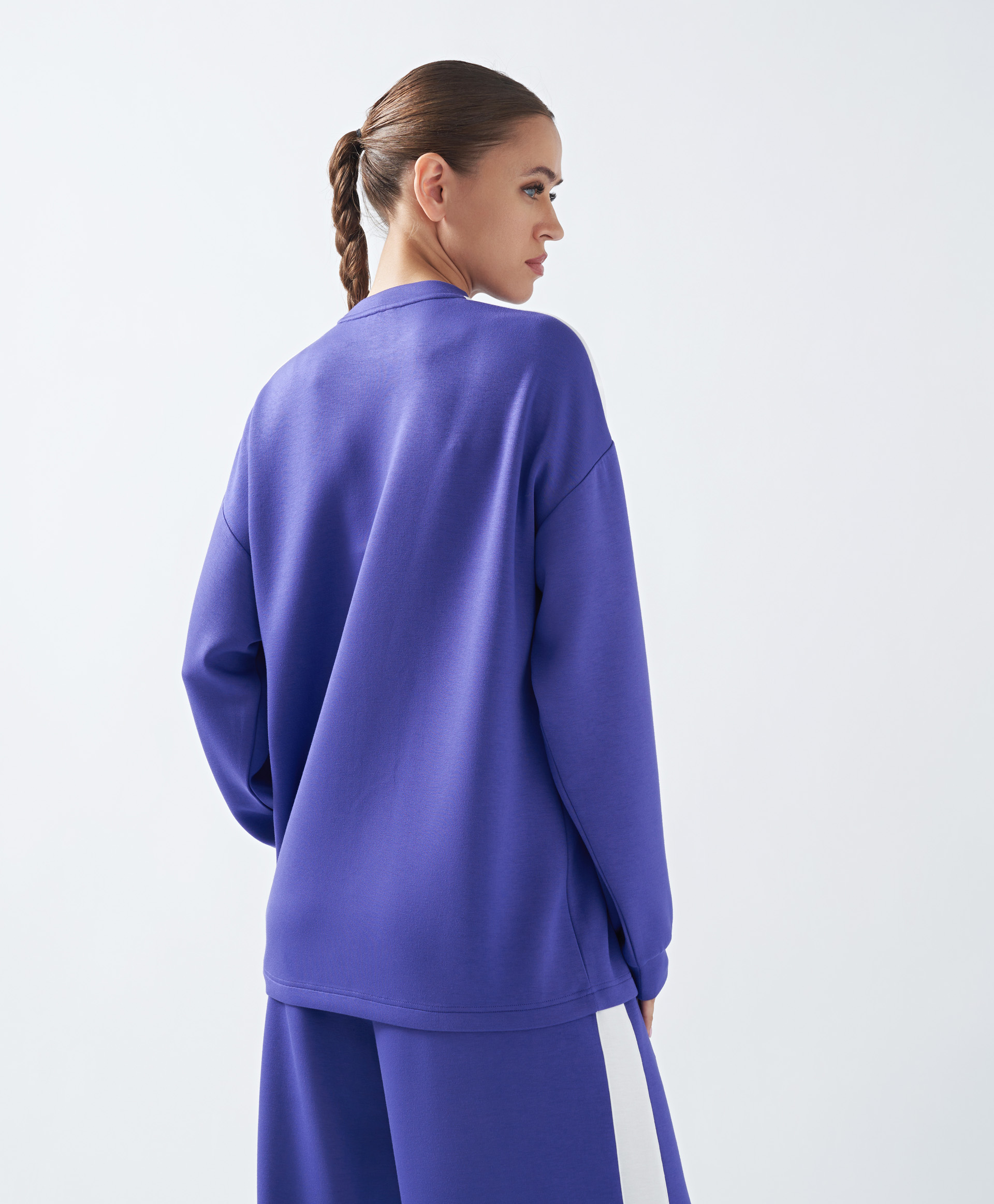 Удлиненная фиолетовая толстовка с лампасами для женщины Jumkey. Длинные рукава, круглая горловина, приглушенный фиолетовый цвет, и контрастные лампасы делают эту кофту одновременно и универсальной, и акцентной. Спортивный лонгслив дополнен мягкими манжетами, которые не давят и не обтягивают. Модель сделана из ткани интерлок, которая славится своей прочностью. Благодаря этому изделие прослужит не один год. Хлопок в составе отвечает за мягкость и воздухопроницаемость, полиэстер - за износостойкость, а эластан - за растяжимость. Несмотря на то, что толстовка представлена, как спортивная одежда, носить ее можно и в повседневной жизни. Например, поверх футболок и топов прохладным летним вечером, или надевать под куртку осенью и зимой. Эффектный цвет позволит составлять с толстовкой модные тотал-луки или создавать с ее помощью акценты в образах.