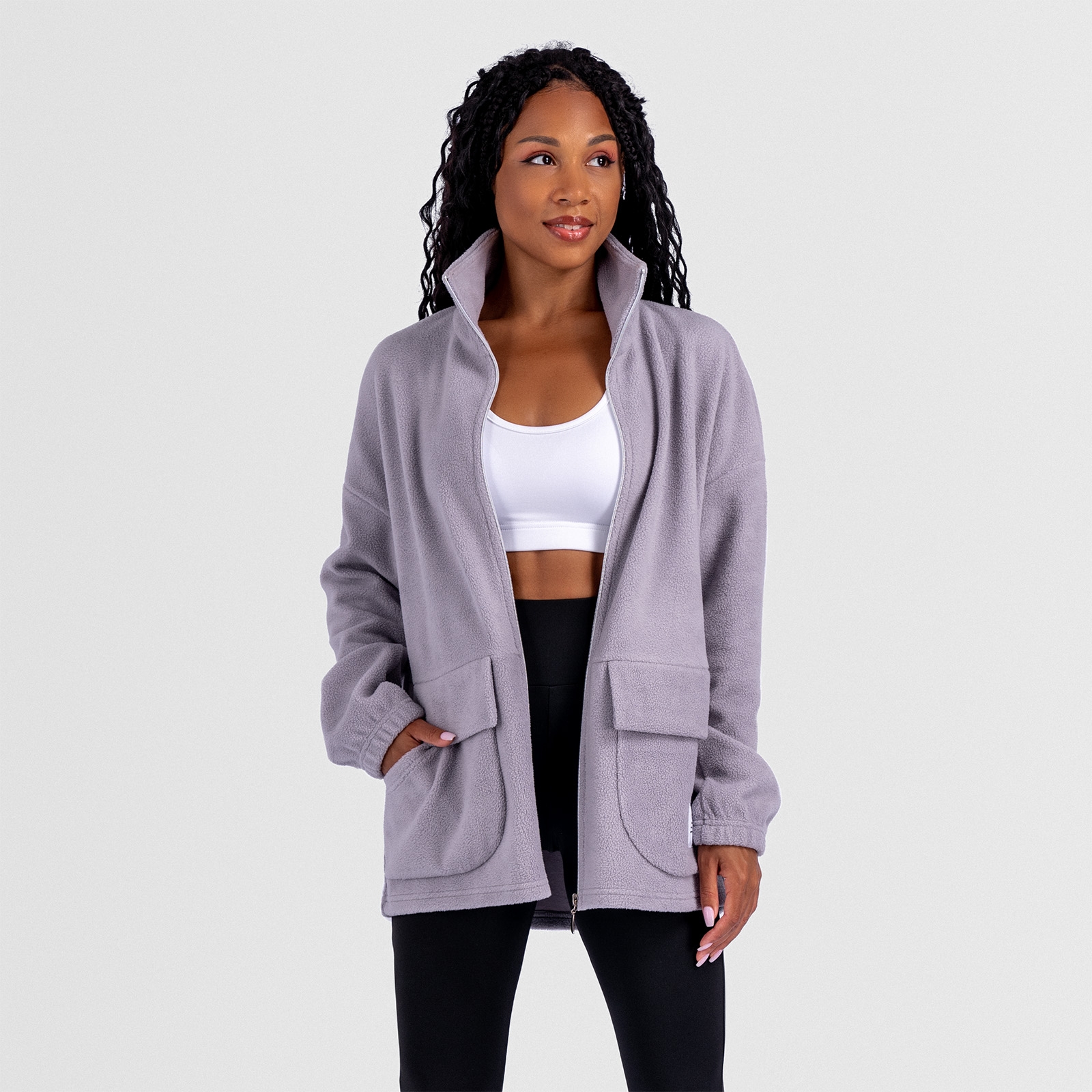 св.серый Женская куртка-толстовка на молнии, с воротником-стойкой и накладным карманом.Материал: