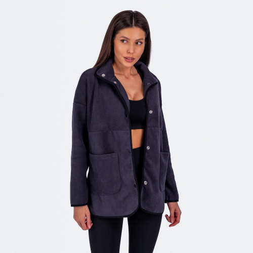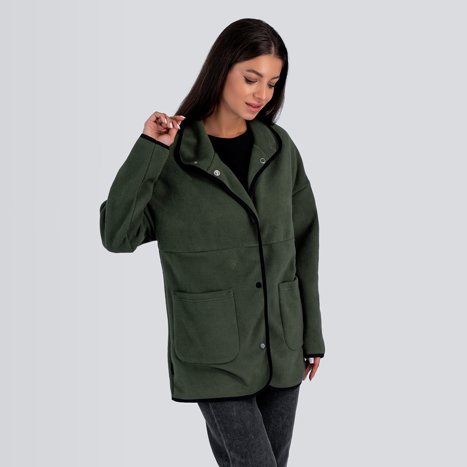 Женская куртка-толстовка на кнопках, с воротником-стойкой и накладными карманами.Материал: