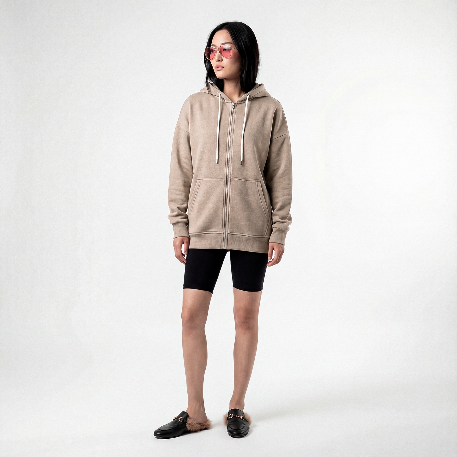 Женская базовая толстовка на молнии, с капюшоном и карманом кенгуру.Материал: