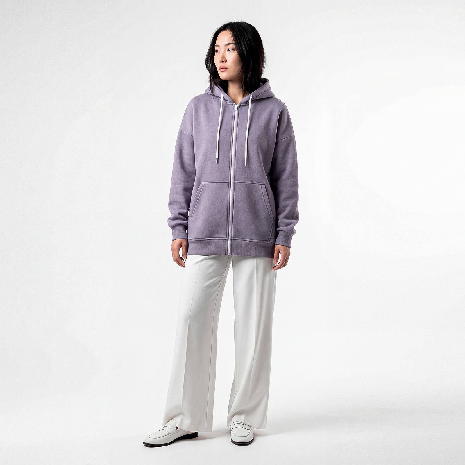 Женская базовая толстовка на молнии, с капюшоном и карманом кенгуру.Материал: