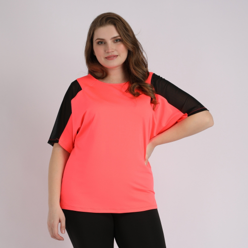 Женский топ свободного кроя с разрезами по бокам и вставками из сетки.Материал: