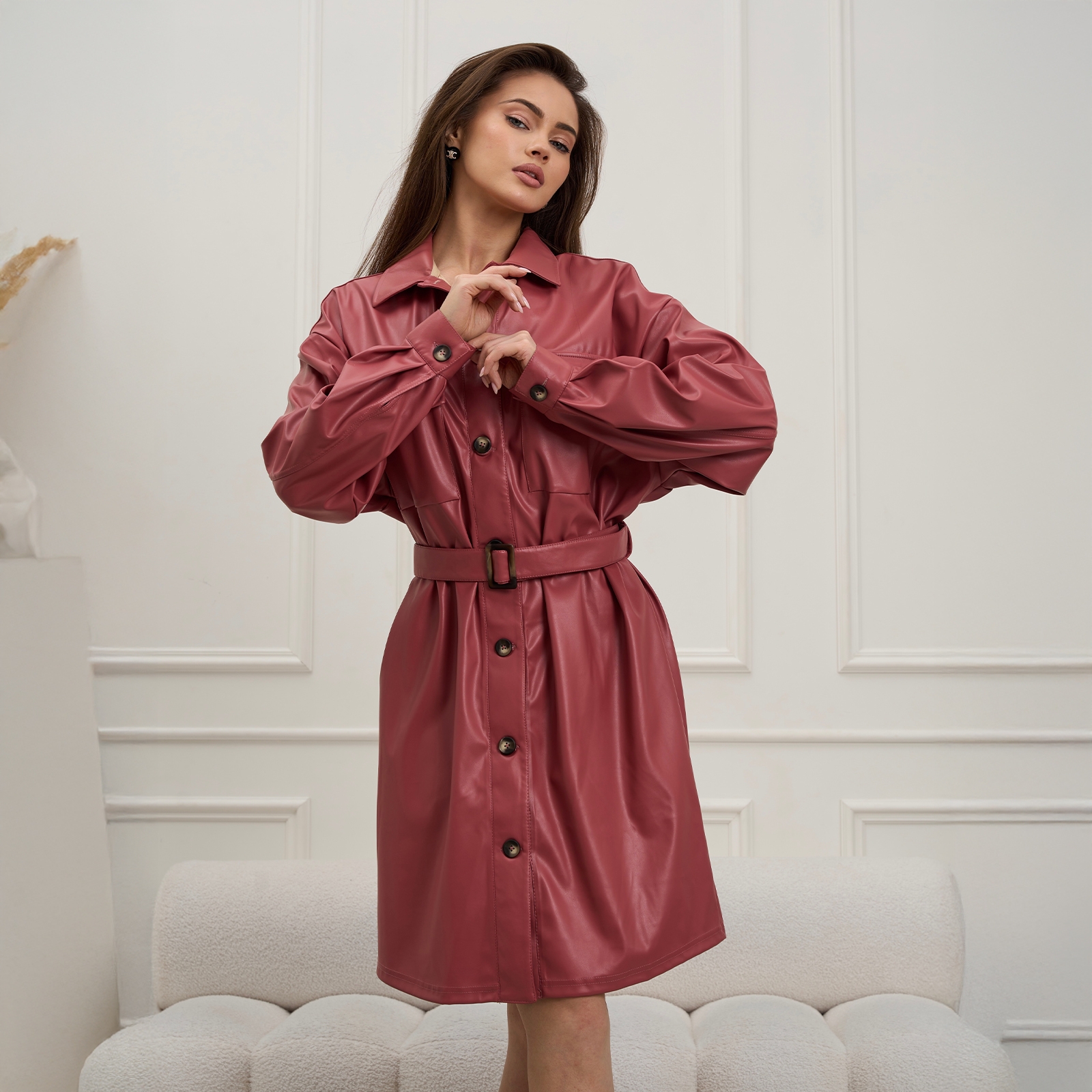 Женский тренч с поясом.Материал: