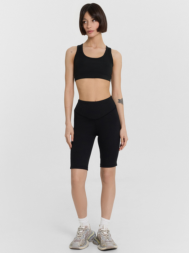 Спортивные шорты прилегающего силуэта из интерлока. В составе – полиэстер и эластан, которые дарят полотну прочность и долговечность, помогают быстро отводить влагу от тела. Длина чуть выше колена. Посадка по талии высокая. Широкий эластичный пояс добавляет комфорта. Идеальные шорты для любых видов спорта!