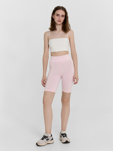 Женские велосипедки из интерлока — это идеальный выбор для активного образа жизни и повседневного комфорта. Облегающий силуэт подчеркивает фигуру, а высокая посадка визуально удлиняет ноги и обеспечивает надежную посадку без сползания. Модель выполнена без боковых швов, что исключает натирание и делает посадку особенно комфортной. Наличие ластовицы повышает удобство при движении и усиливает прочность изделия. Широкий эластичный пояс мягко фиксирует велосипедки на талии, создавая легкий утягивающий эффект. Интерлок — это плотный, но мягкий трикотаж, который хорошо держит форму, не просвечивает и устойчив к износу. Он приятен к телу, подходит для занятий спортом, прогулок и домашнего отдыха. Нижние срезы обработаны швом вподгибку, что придает изделию аккуратный и завершенный вид. Велосипедки легко сочетаются с топами, футболками и худи, позволяя создавать как спортивные, так и повседневные образы.