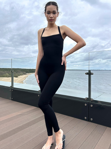 Женский бесшовный длинный комбинезон в рубчик, для спорта и отдыха. Бретели спереди образуют вырез-каре, а сзади сходятся и красиво оформляют спинку. Упругая ткань и специальная вязка идеально подтягивают фигуру. Имеются съемные встроенные чашечки для лучшей посадки и безупречного силуэта.