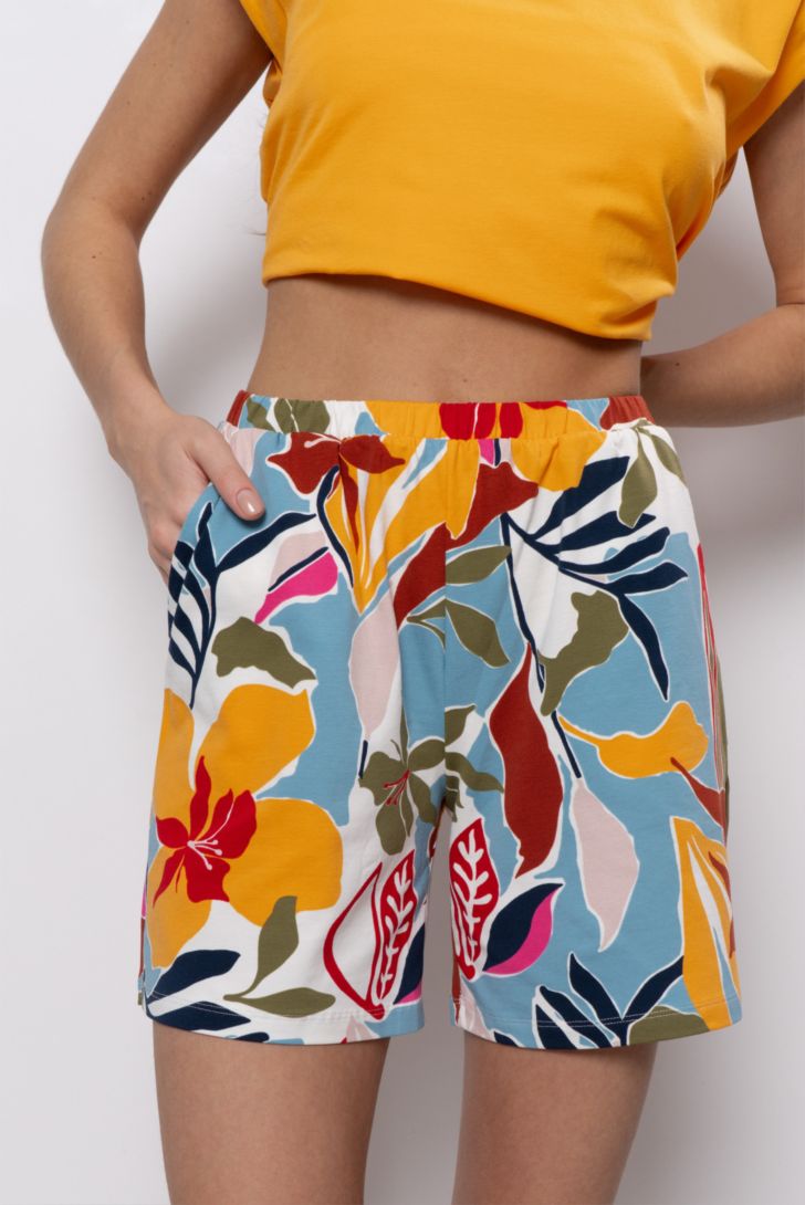Шорты комфортной длины на мягком поясе. В боковых швах функциональные карманы. Удобная посадка на фигуре не сковывает движений, позволяя чувствовать абсолютный комфорт как дома, так и на отдыхе.