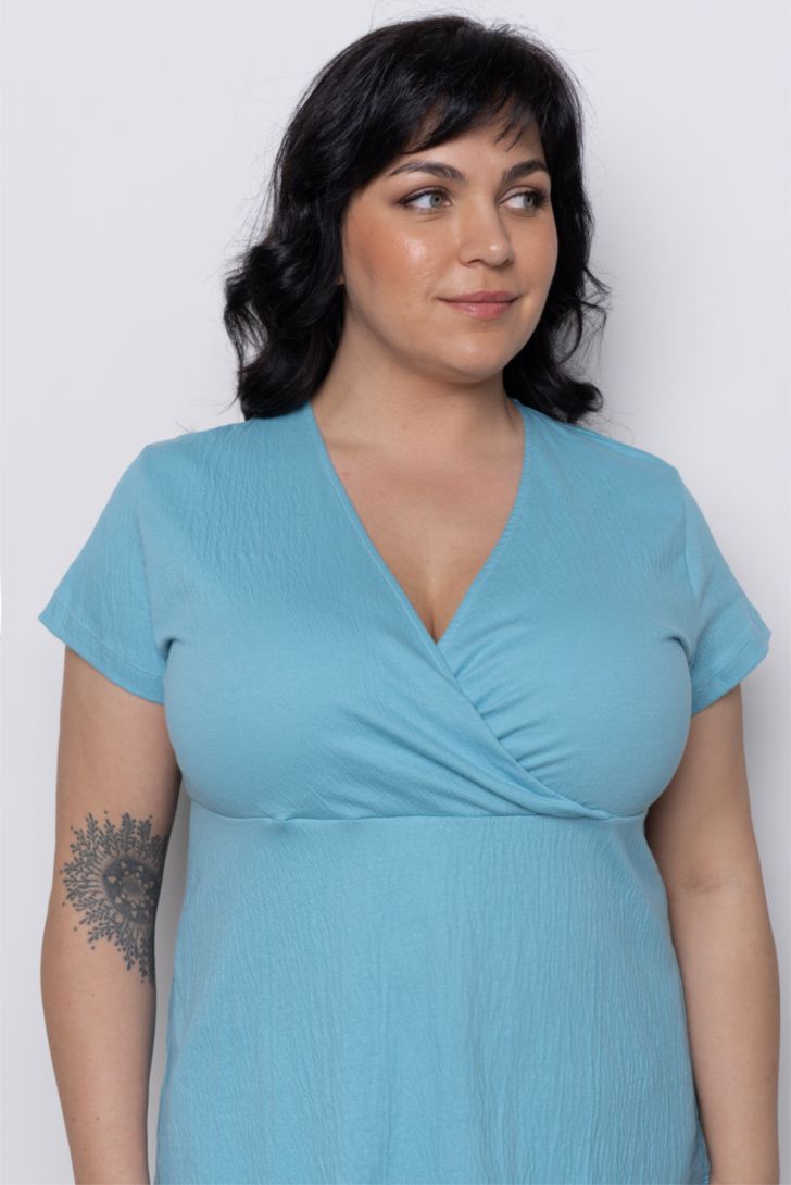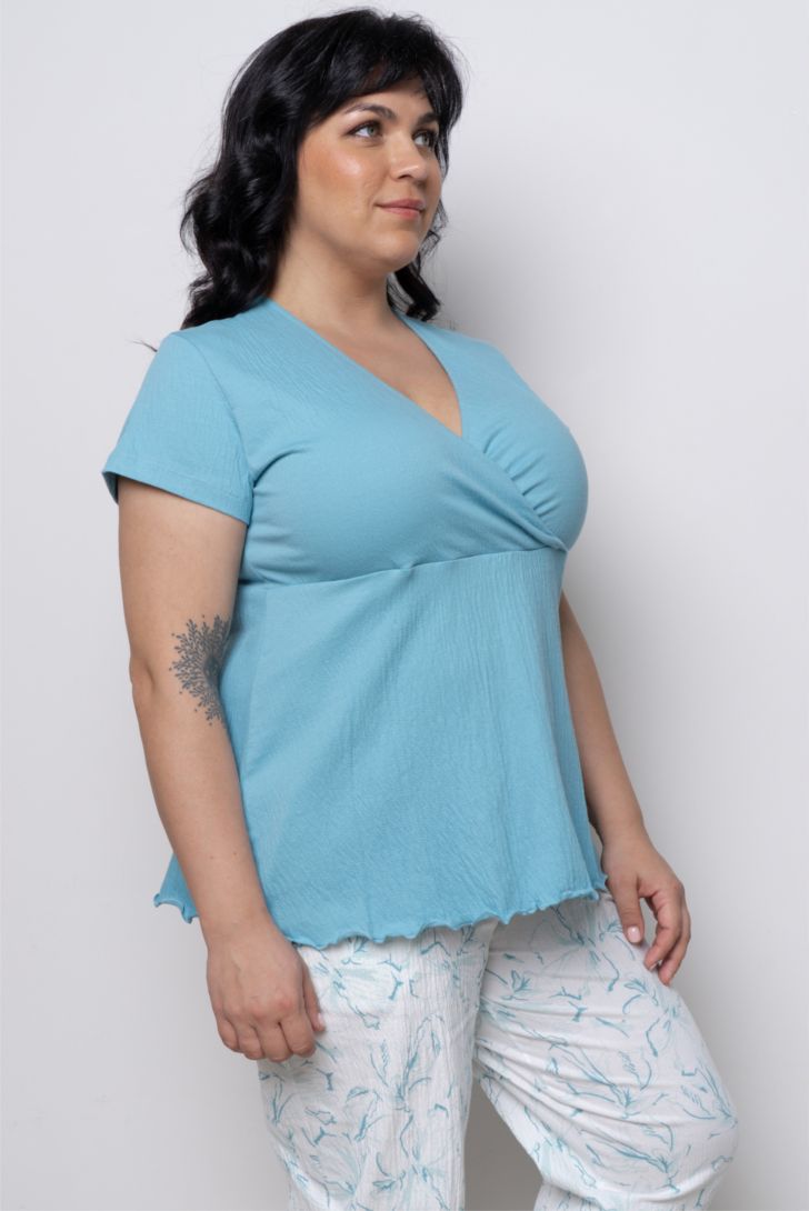 "Футболка с коротким рукавом, полуприлегающего кроя с подрезом под линией груди. Вырез горловины V - образный.