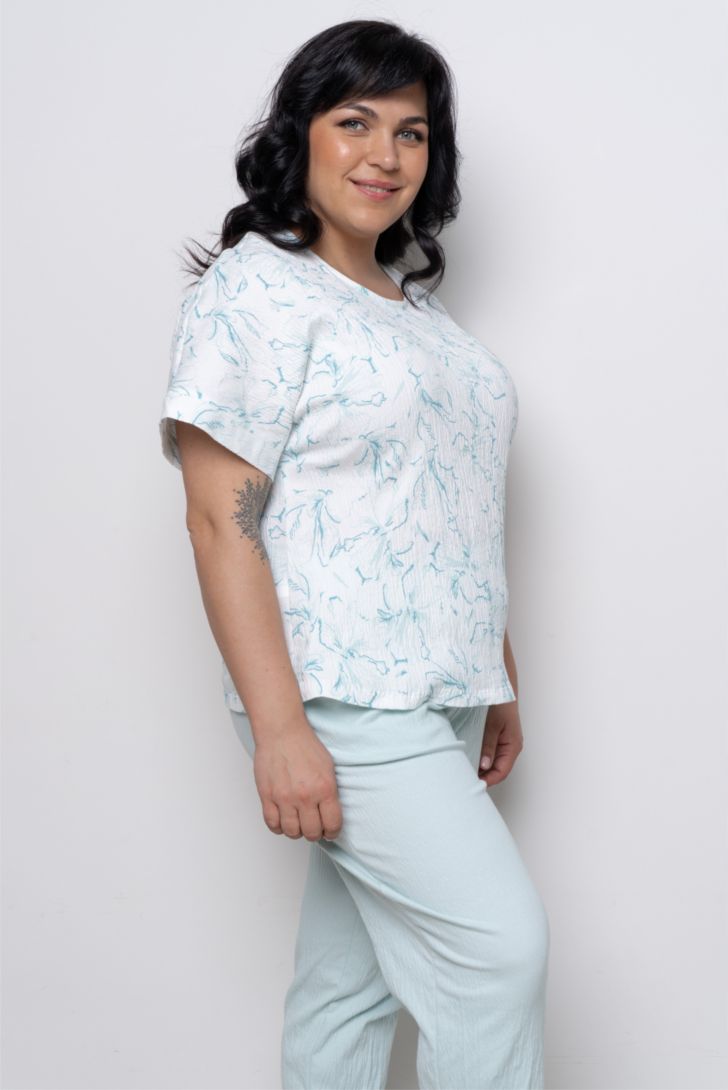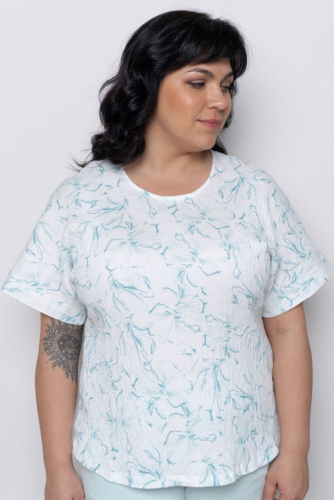 Футболка свободного прилегания с коротким рукавом. Вырез горловины круглый. Футболка представлена в трех цветовых решениях, дополнит образ к однотонным брюкам данной коллекции , а так же к любым поясным изделиям из личного гардероба.