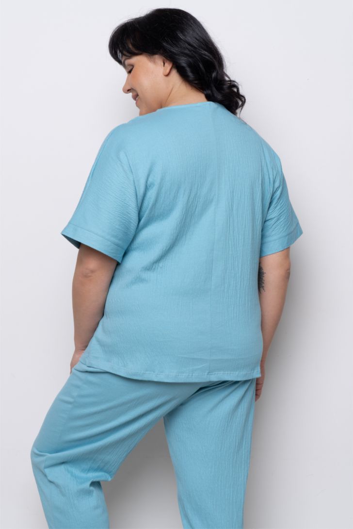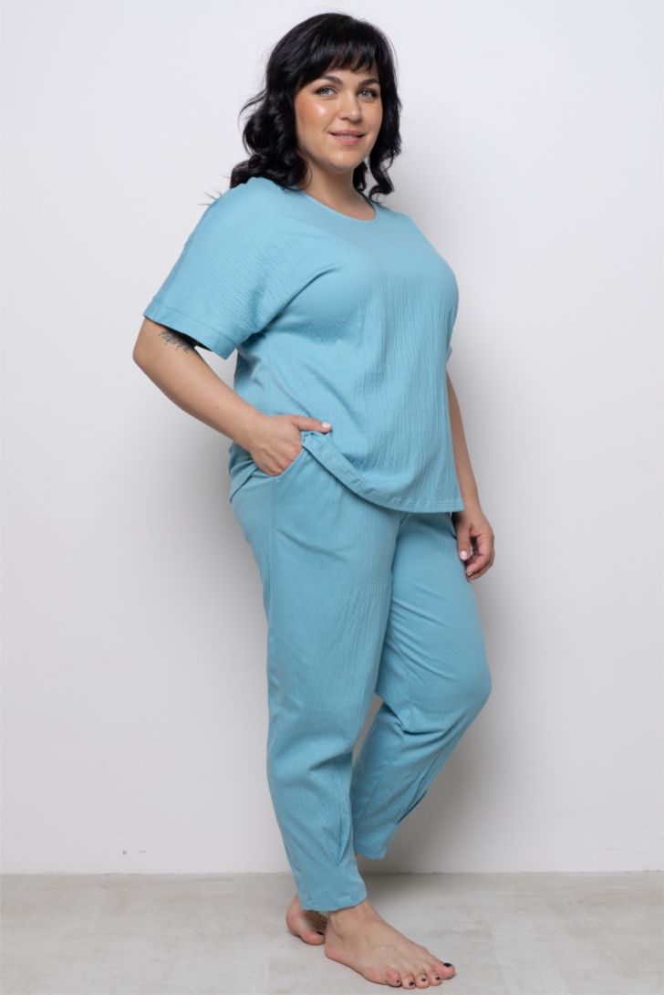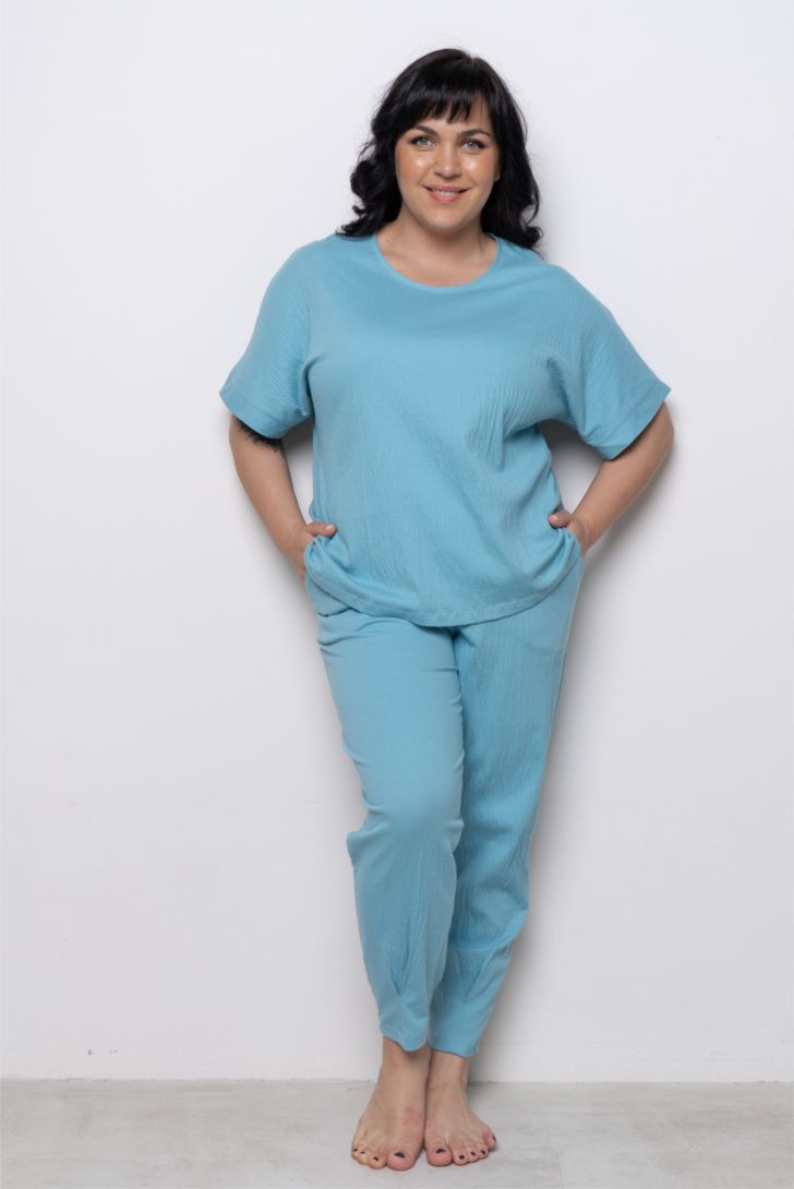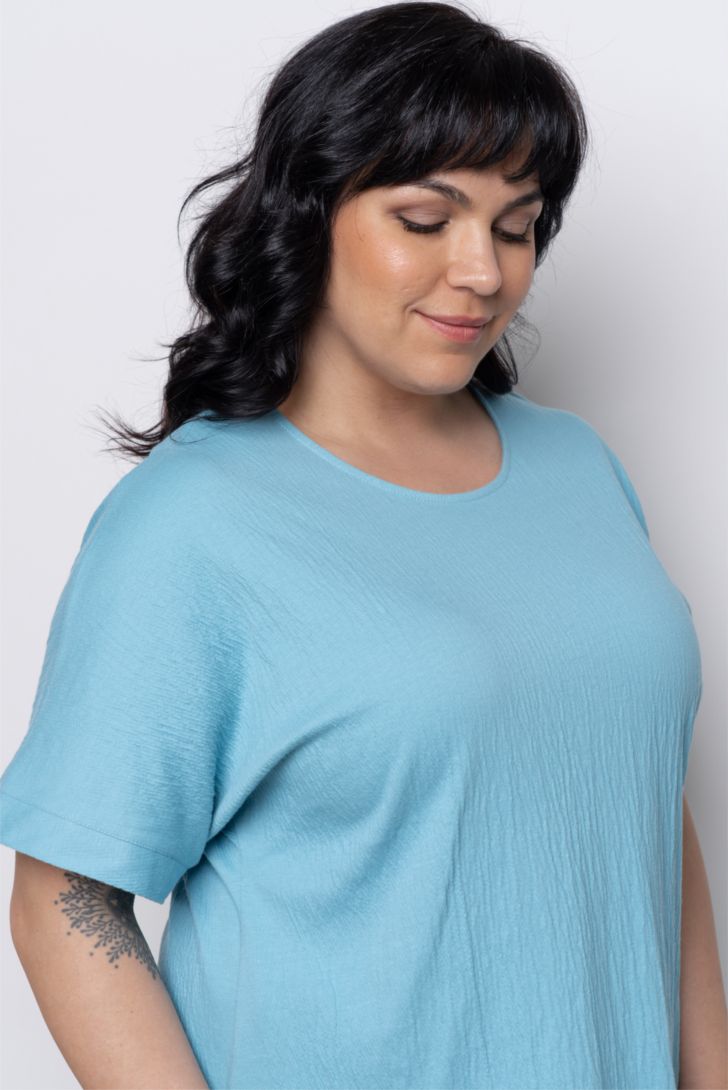 Футболка свободного прилегания с коротким рукавом. Вырез горловины круглый. Футболка представлена в трех цветовых решениях, дополнит образ к однотонным брюкам данной коллекции , а так же к любым поясным изделиям из личного гардероба.