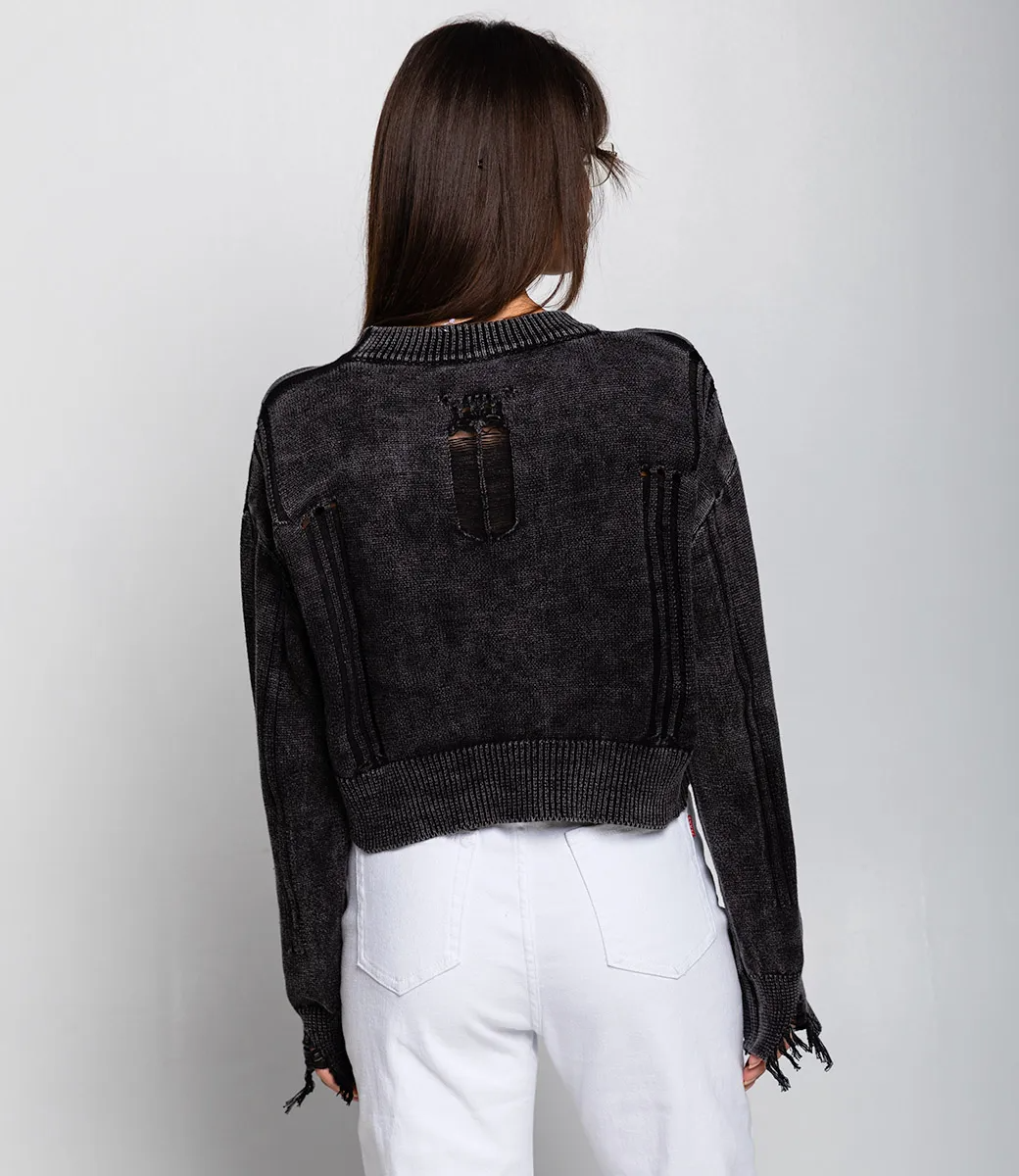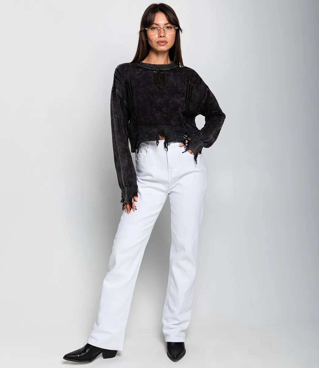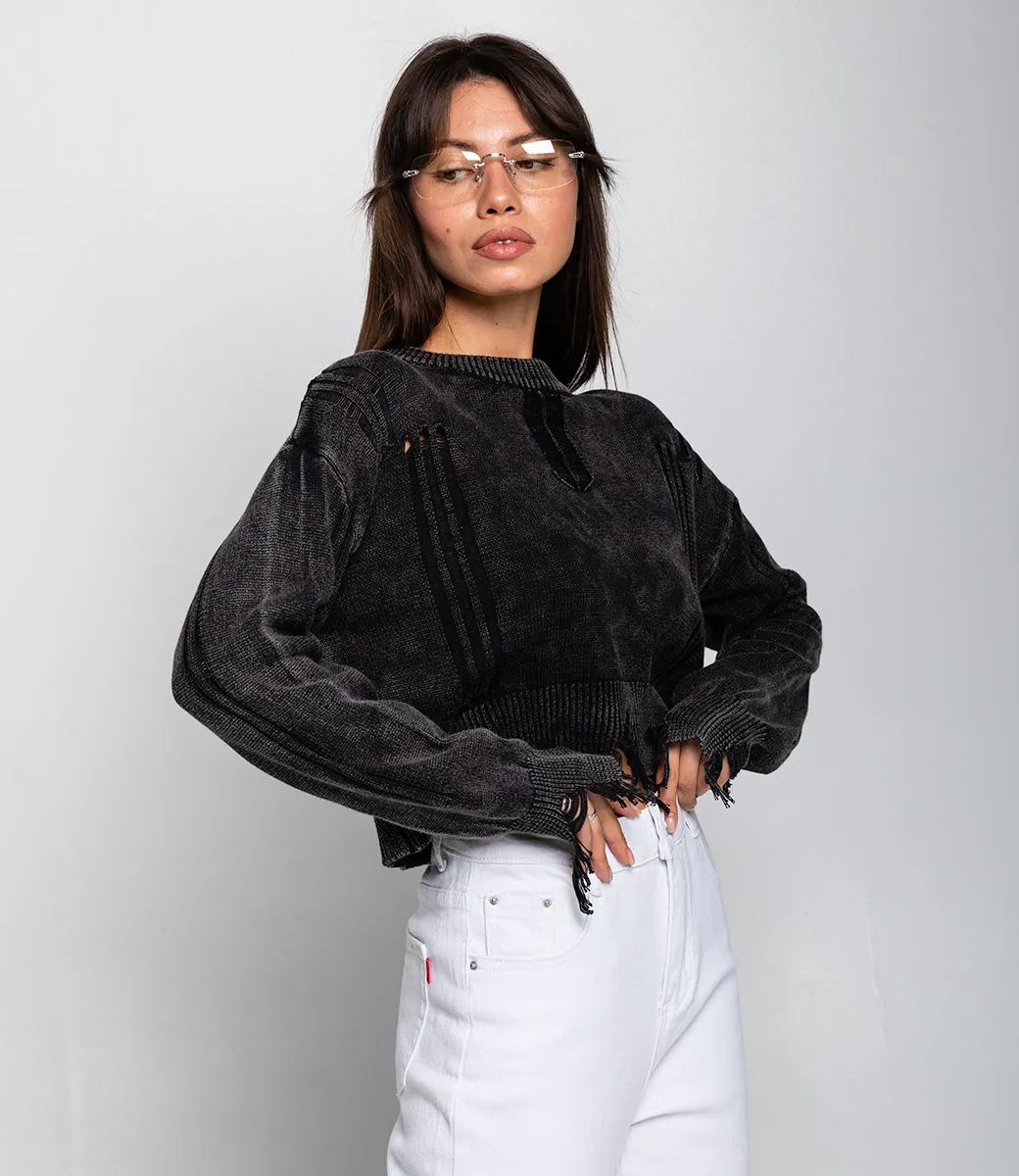Джемпер – это одежда, которая подчеркивает уникальность каждой женщины. Укороченный джемпер с рваностями отлично подойдет для демисезонного сезона. Его предпочитают покупательницы, которые ценят сочетание качества и эксклюзивности. Фасон подчеркивает привлекательность фигуры. Производитель знает, как разработать стильные и модные решения. Для пошива использована ткань, состоящая из 50% хлопка и 50% акрила, которая характеризуется отличным качеством. Даже после большого количества стирок изделие не потеряет первоначальной красоты. Вы обязательно будете носить его с радостью. Обратите внимание на стильные рваности. Они придают джемперу особый шарм и делают его еще более выразительным.Чтобы вы были уверены в размере, мы представили на странице таблицу. Воспользовавшись ею, вы сможете сами обмерить себя и удостовериться. Установленная нами цена является приемлемой. Не откажите себе в удовольствии быть неповторимой!Рост модели 164 см., 83-61-89.