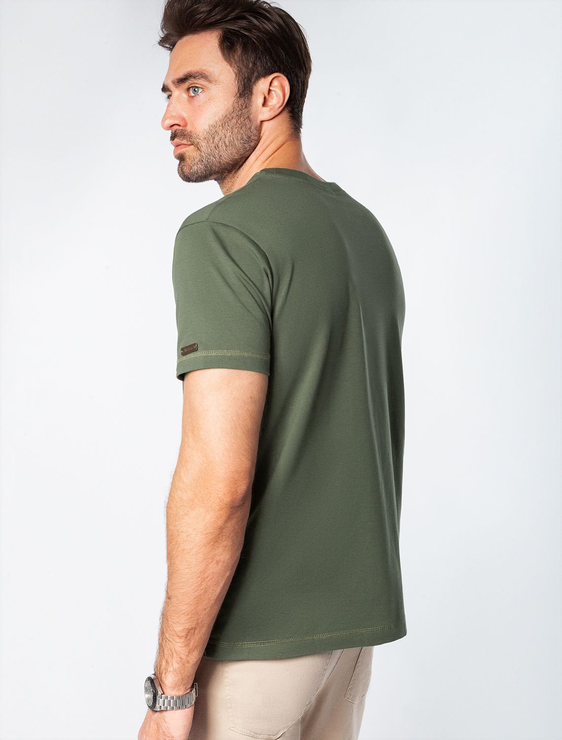 Базовая футболка цвета хаки из премиального хлопка с эластаном полуприлегающего кроя станет универсальным решением для любого случая. Прямой крой обеспечивает комфортную посадку на любую фигуру, включая большие размеры, подходит как на низкий, так и на высокий рост. Выполненная из натуральной ткани, она обладает дышащими свойствами, а за счет эластичности сохраняет форму даже после длительного ношения и многочисленных сирок.