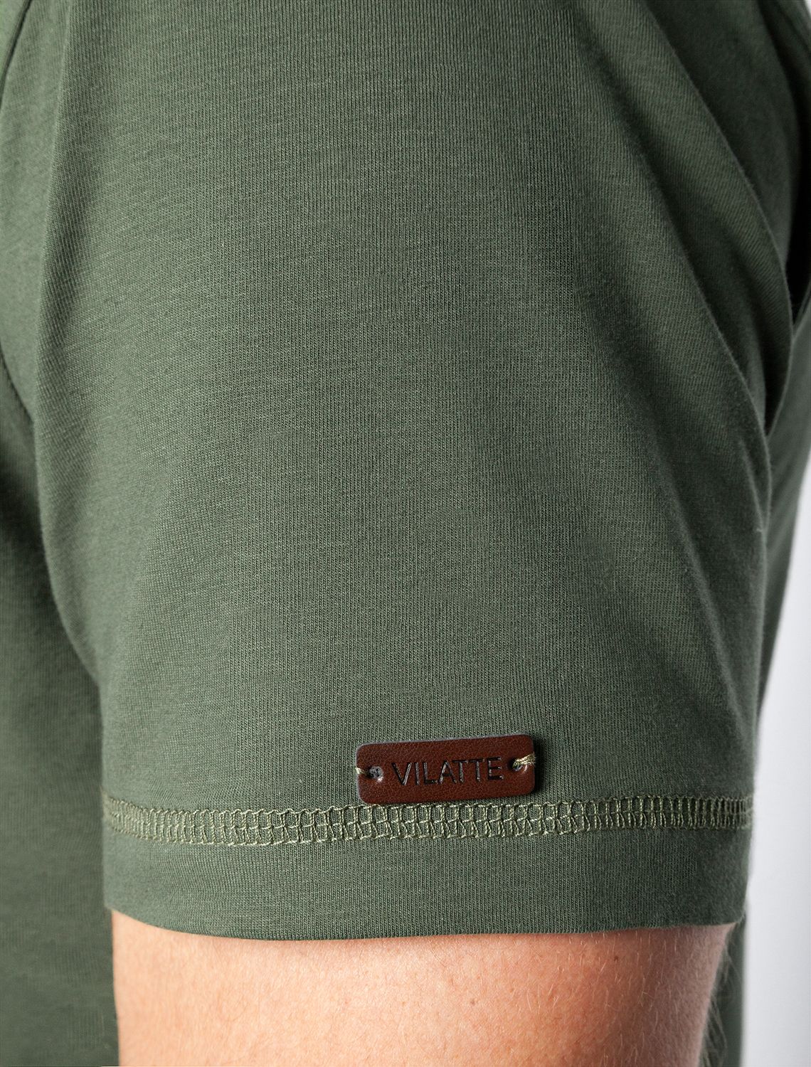Однотонная футболка выполнена в минималистичном стиле, дополнена аккуратной вышивкой на груди в виде буквы V в тон изделия, а так нашивкой на рукаве из эко-кожи с логотипом VILATTE. Подходит как классический вариант для работы в офисе под пиджак, так и для повседневной носки или занятий спортом. Мягкая ткань приятна к телу, не вызывает дискомфорта и идеально подходит для дома или летних прогулок благодаря короткому рукаву.