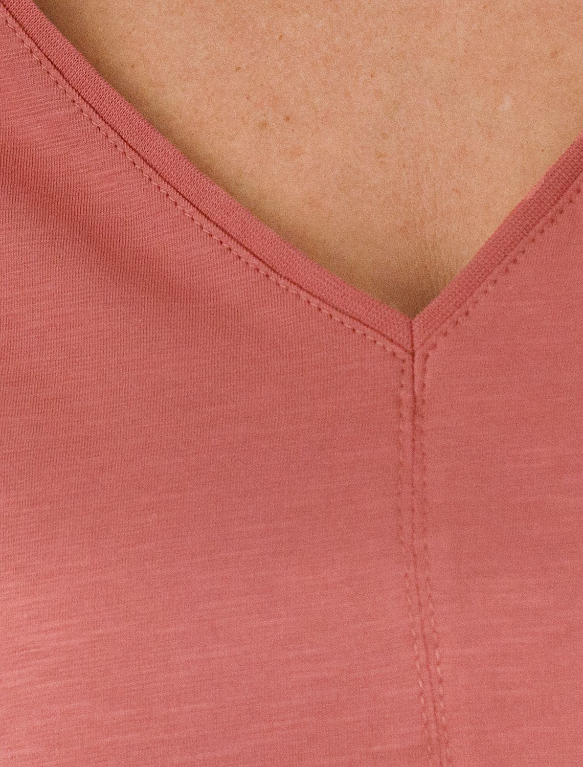 Футболка с цельнокроеным рукавом выполнена из фактурного полотна из 100% хлопка. Базовая модель свободного кроя c V -вырезом легко впишется в любой гардероб. Ткань имеет характерный рисунок черточки за счет сочетания разных волокон хлопка 140-150 г. Хорошо держит форму и поддерживает комфортный микроклимат в течении дня.